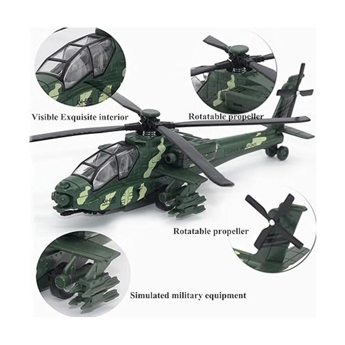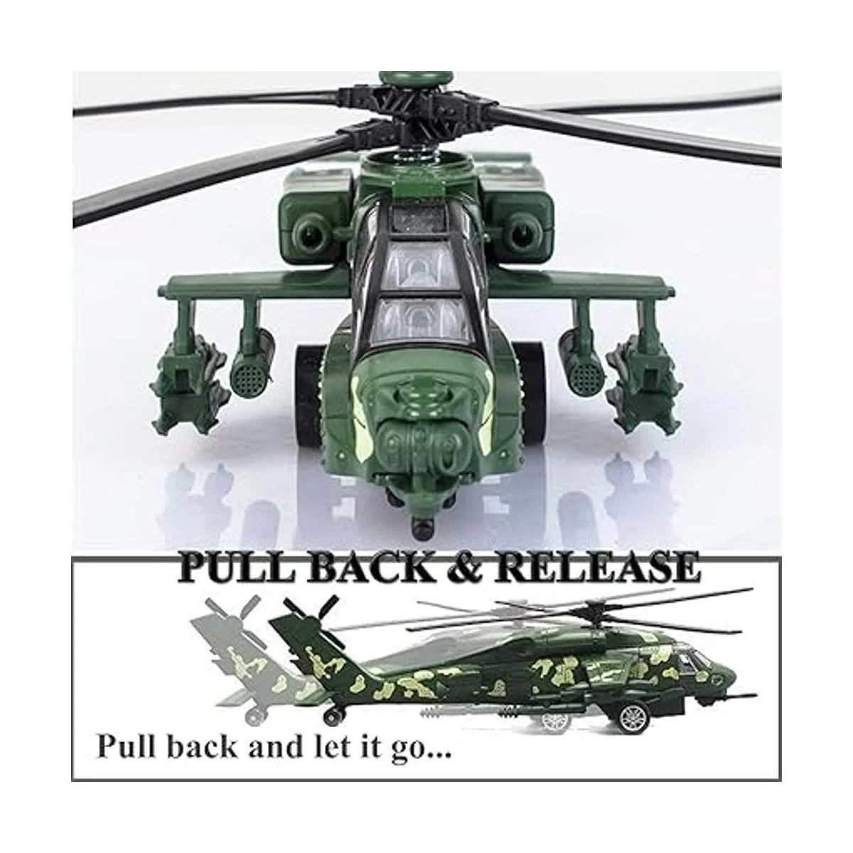 Avión de juguete de tirar hacia atrás: el helicóptero militar viene con función de tirar hacia atrás y liberar. Simplemente presiona y tira del avión hacia atrás y luego déjalo ir, el avión del ejército se apresurará.