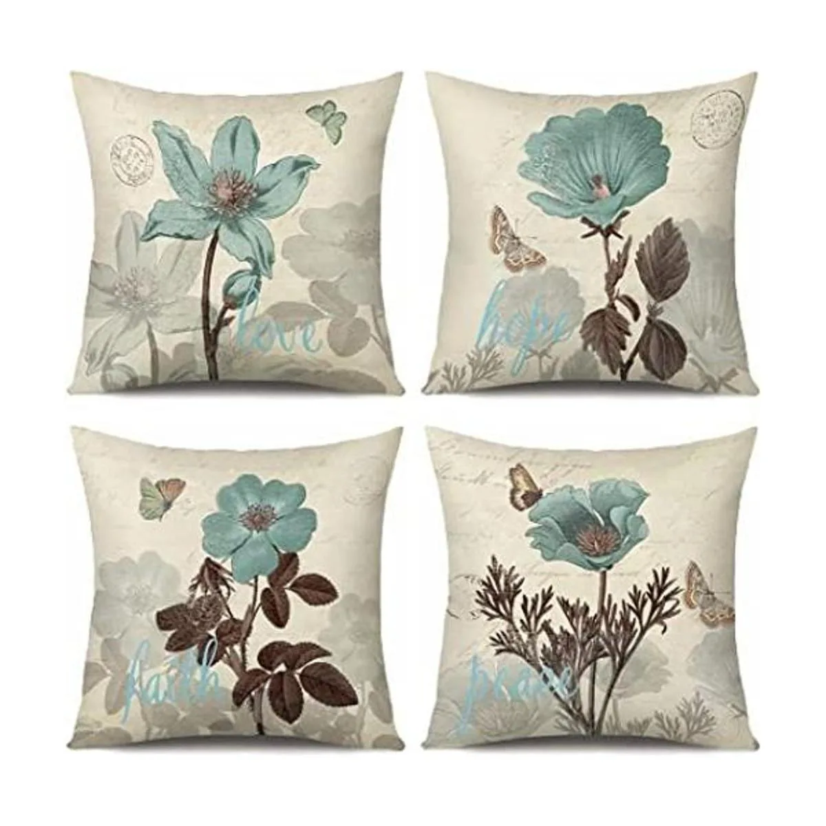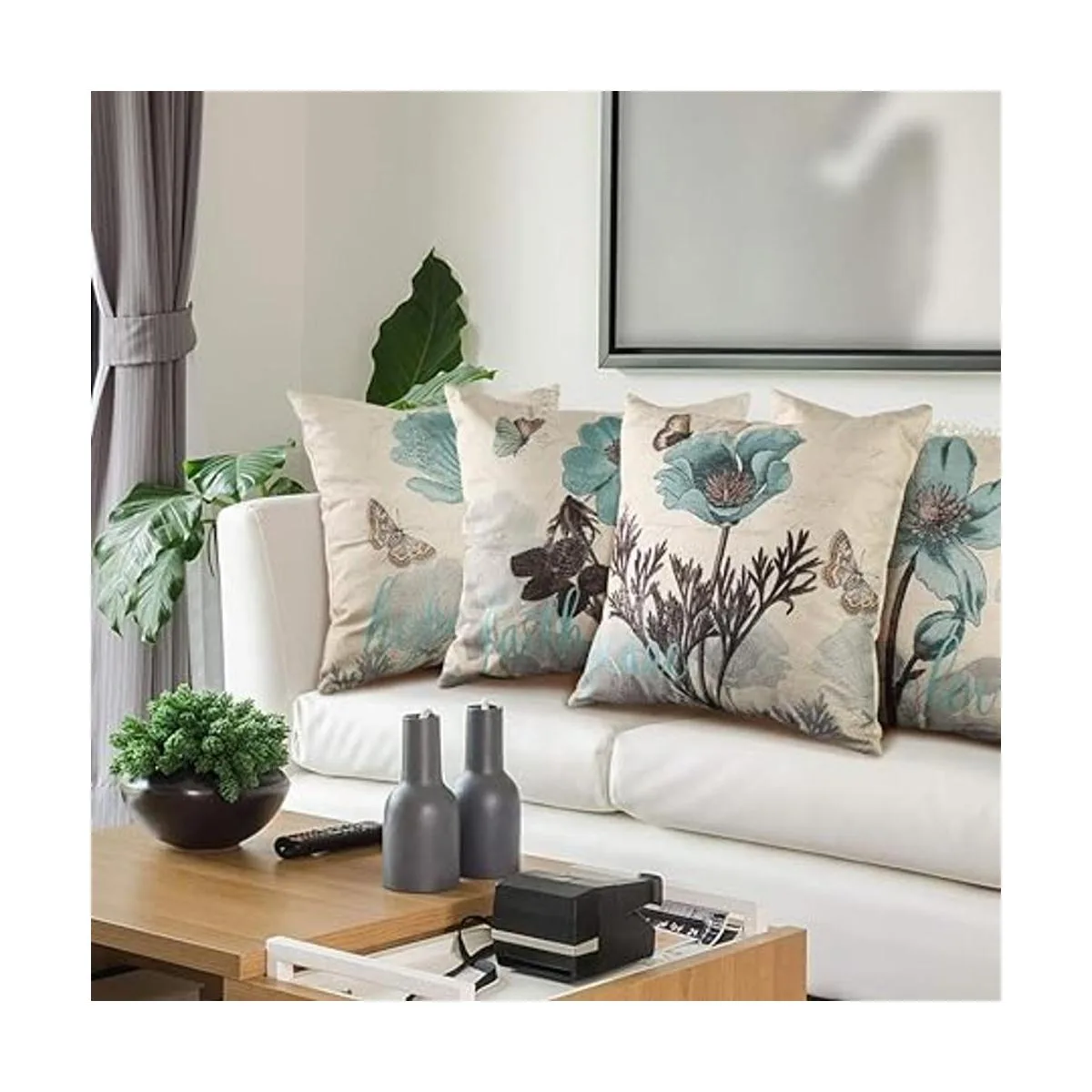 OTOSTAR Juego de 4 fundas de almohada cuadradas decorativas de 18 x 18 pulgadas, fundas de almohada cuadradas decorativas de lino de algodón para decoración del hogar, sofá, dormitorio y coche