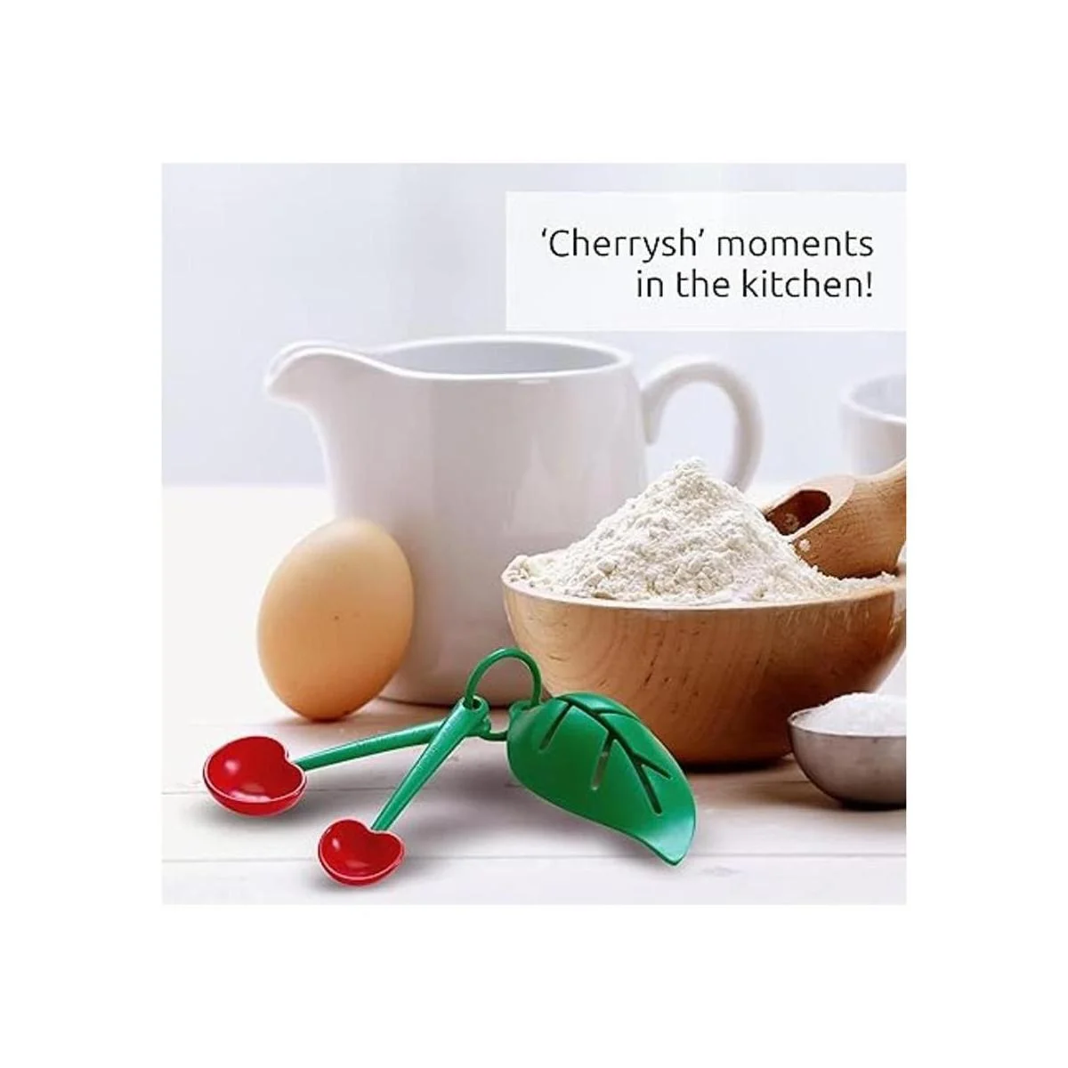 OTOTO Mon Cherry Cucharas medidoras y separador de huevos, regalo de San Valentín para ella, regalos de San Valentín, juego de cucharas medidoras para hornear, sin BPA y apto para lavavajillas, ingredientes secos y líquidos 4 piezas