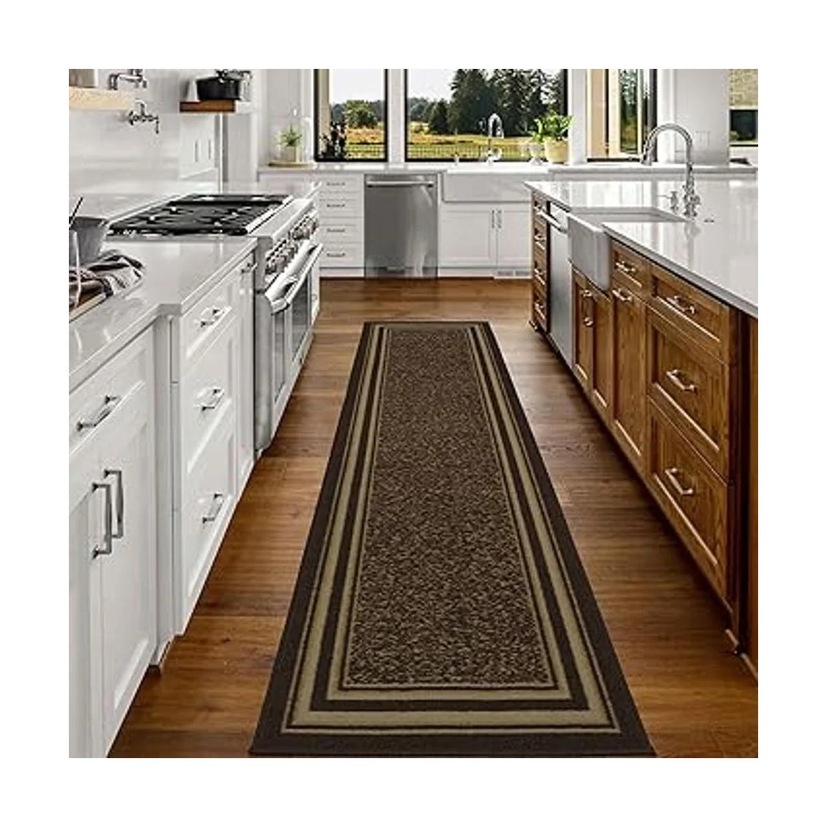 Ottomanson, colección Ottohome, tapete camino de color, estilo contemporáneo con bases antiderrapante, parte trasera de hule, Polipropileno, Marrón