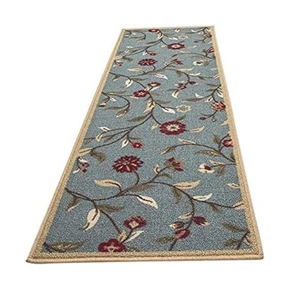 Ottomanson, colección OttoHome, tapete para corredor con diseño azul claro y damasco antiderrapante, parte trasera de goma