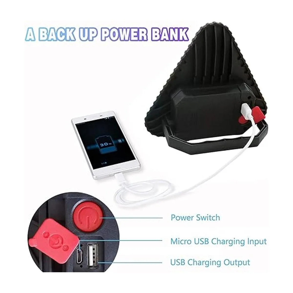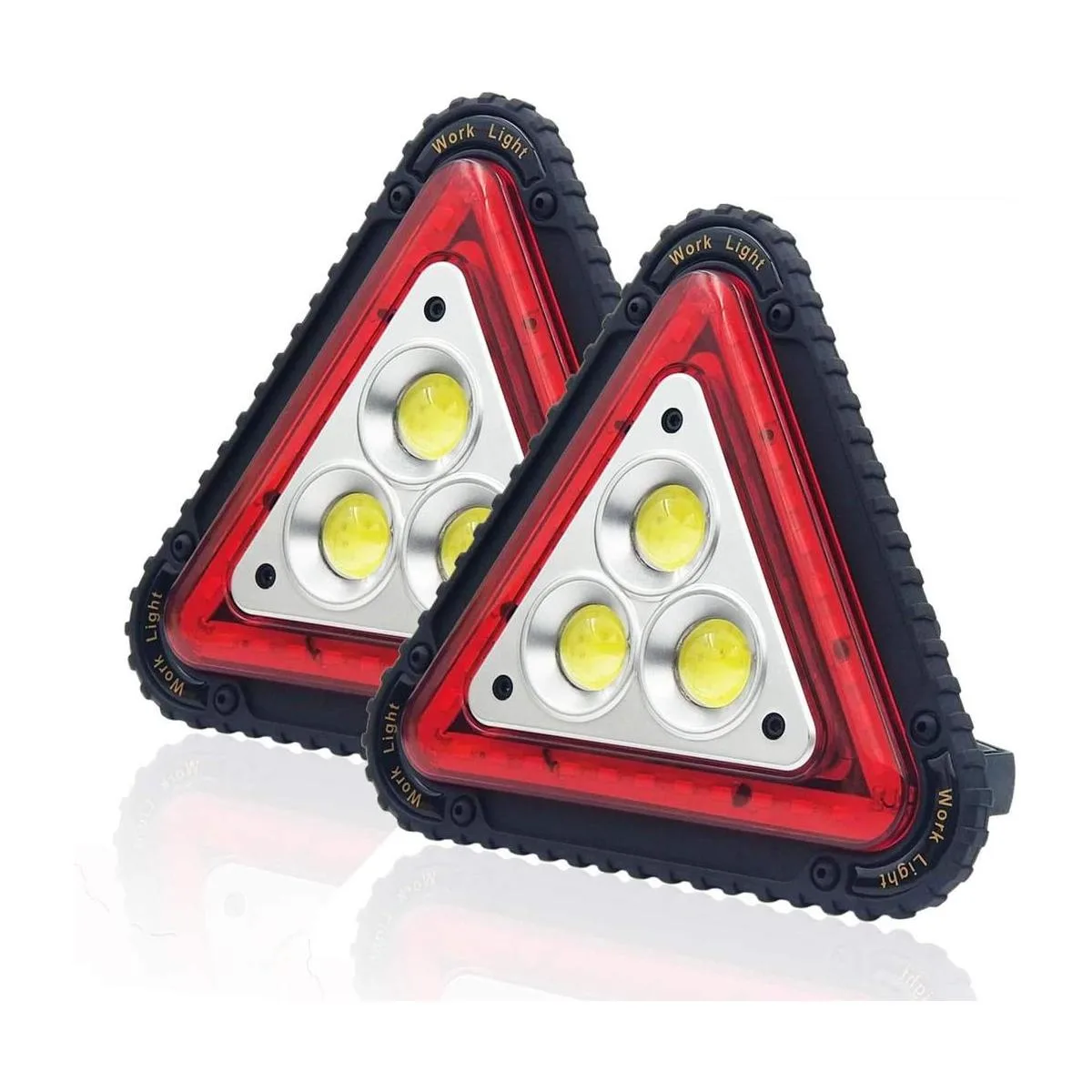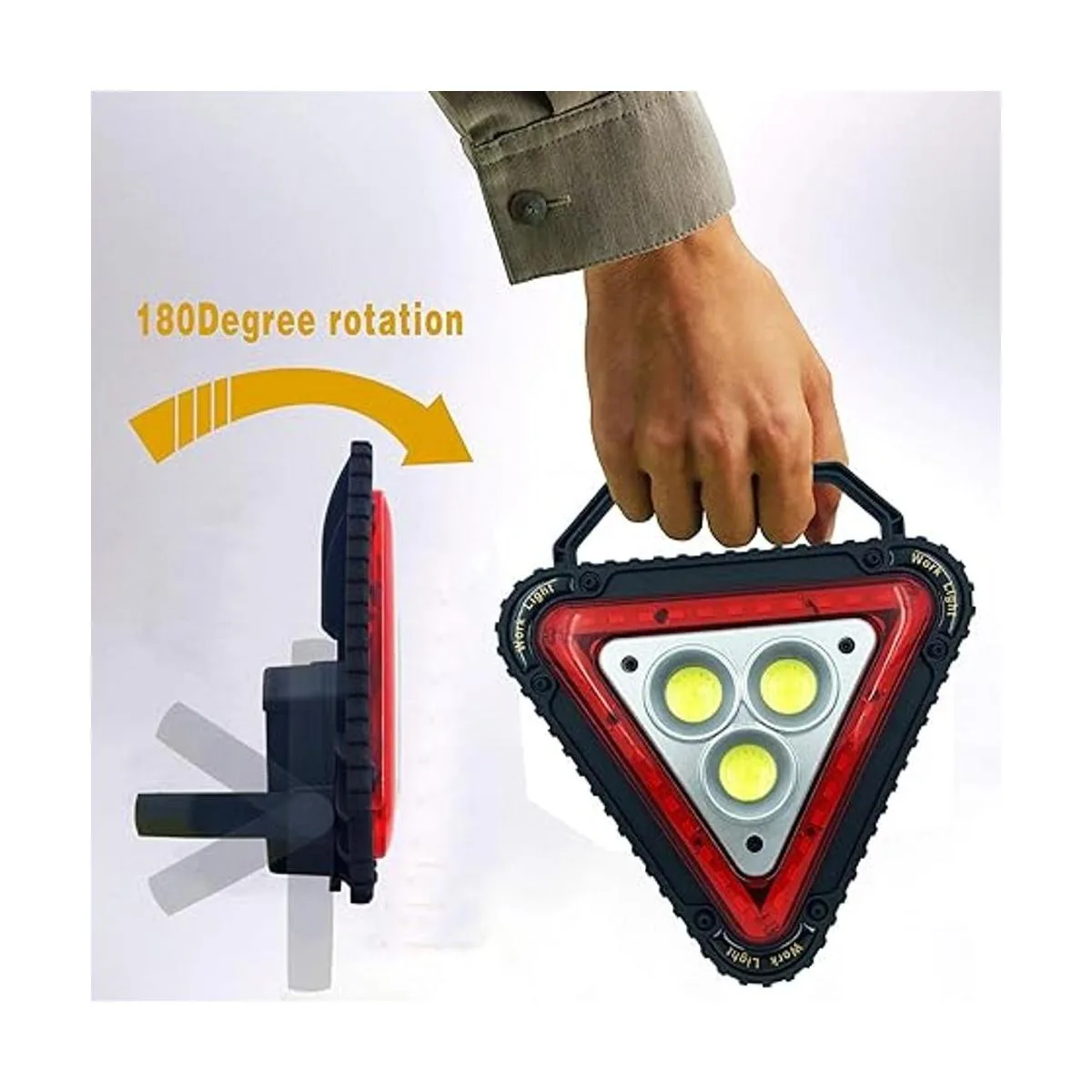 4 modos y resistente al agua: Pulse el botón de encendido para encender la luz de trabajo recargable: alto, bajo, brillo rojo y modo de luz roja SOS. Clasificación IP65 impermeable, garantiza que la luz de trabajo LED recargable funciona bien en días de lluvia. Las luces LED de emergencia intermitentes de triángulo advierten a otros conductores de su presencia, el mejor engranaje en una emergencia de carretera