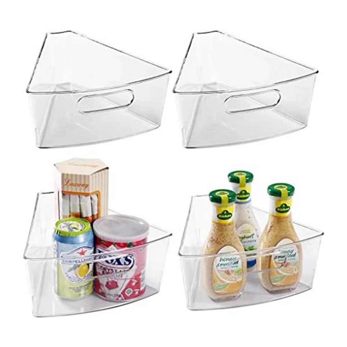 Oubonun Lazy Susan Organizadores Juego de 4, contenedores de almacenamiento transparentes de plástico de 10.2 x 9.4 x 4 pulgadas con asa, contenedor de 4 pulgadas de profundidad, cuña de 18, aptos para alimentos, sin BPA.
