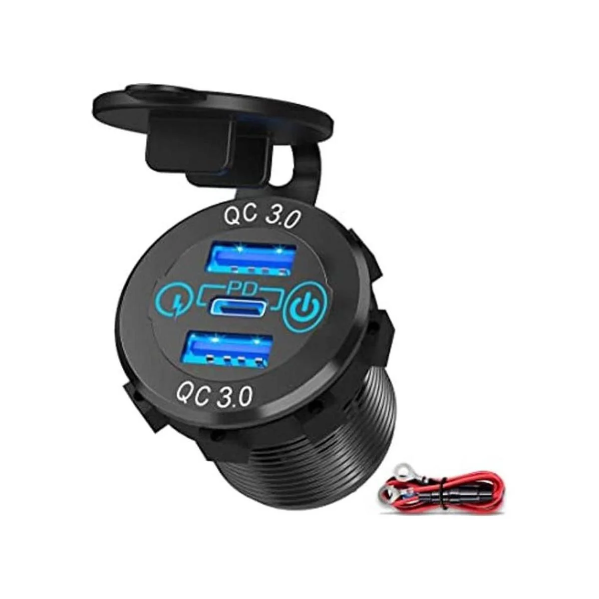 Ouffun Enchufe de cargador de coche USB C de 56 W, metal de aluminio de 12 V, 24 V, múltiples salidas USB, 20 W, PD USBC y dos puertos QC3.0 con interruptor de alimentación, adaptador rápido para automóvil, barco, camión, golf, caravana, motocicleta