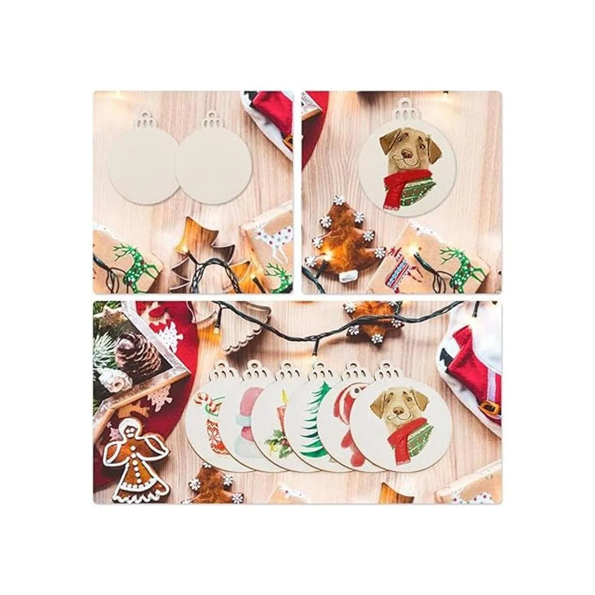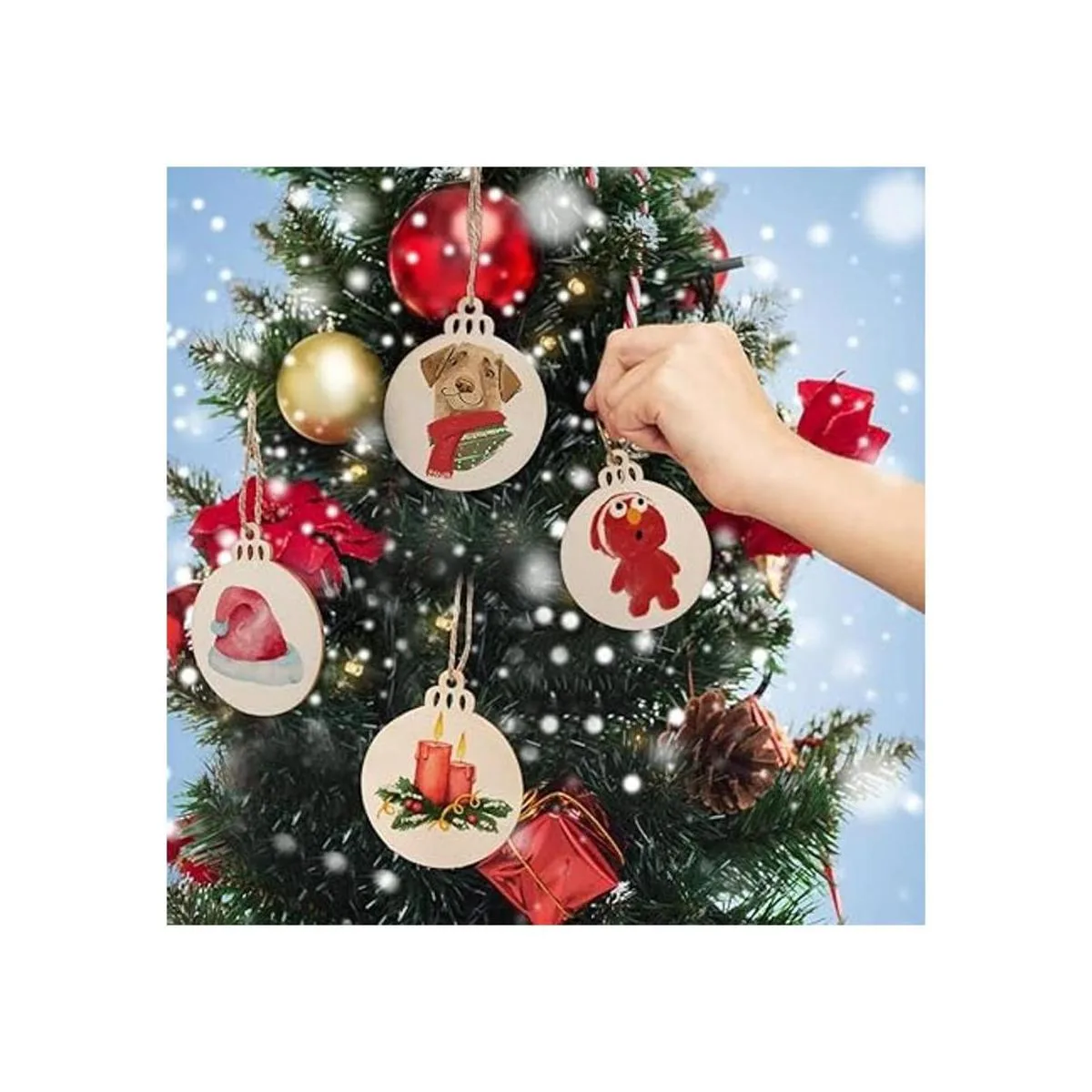 Material: las etiquetas colgantes de Navidad están hechas de madera natural de alta calidad, cortadas con láser y pulidas. Ambos lados están lijados para un acabado liso listo para pintar, teñir, decorar o simplemente dejar liso