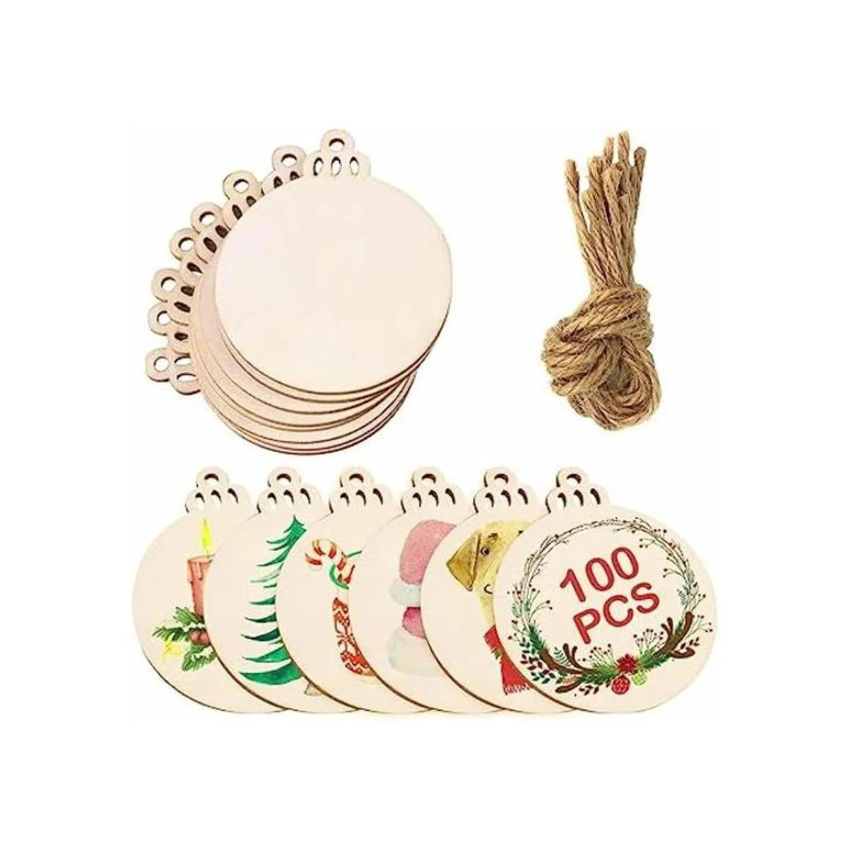 Incluye: 100 círculos de madera en blanco y 100 cordeles de yute, suficientes para cualquier proyecto de manualidades que hayas realizado. Tamaño: 2.874 in de diámetro, 0.118 in de grosor, ideal para colgar en tu árbol de Navidad