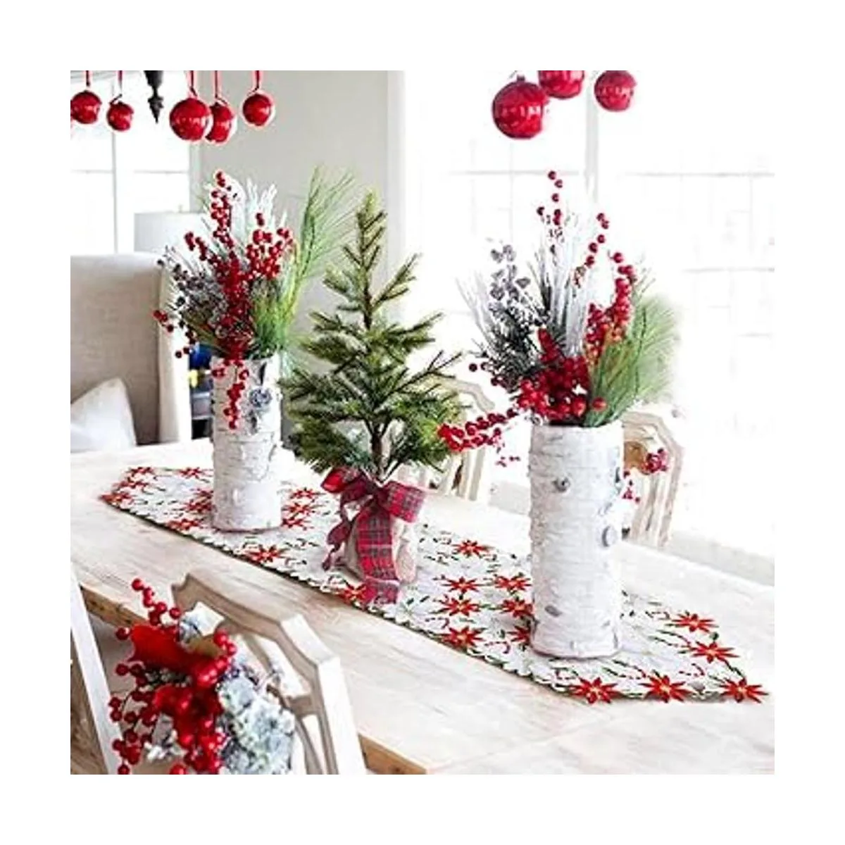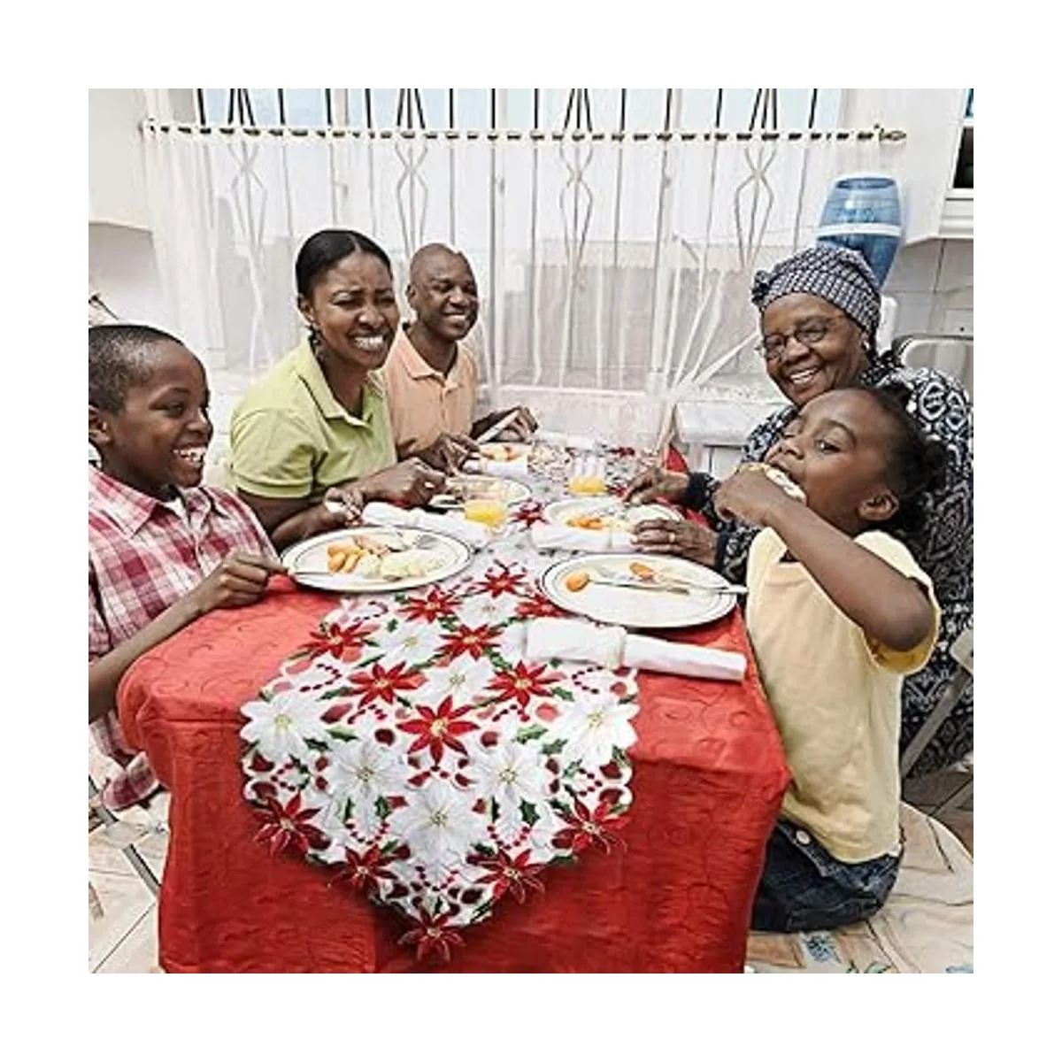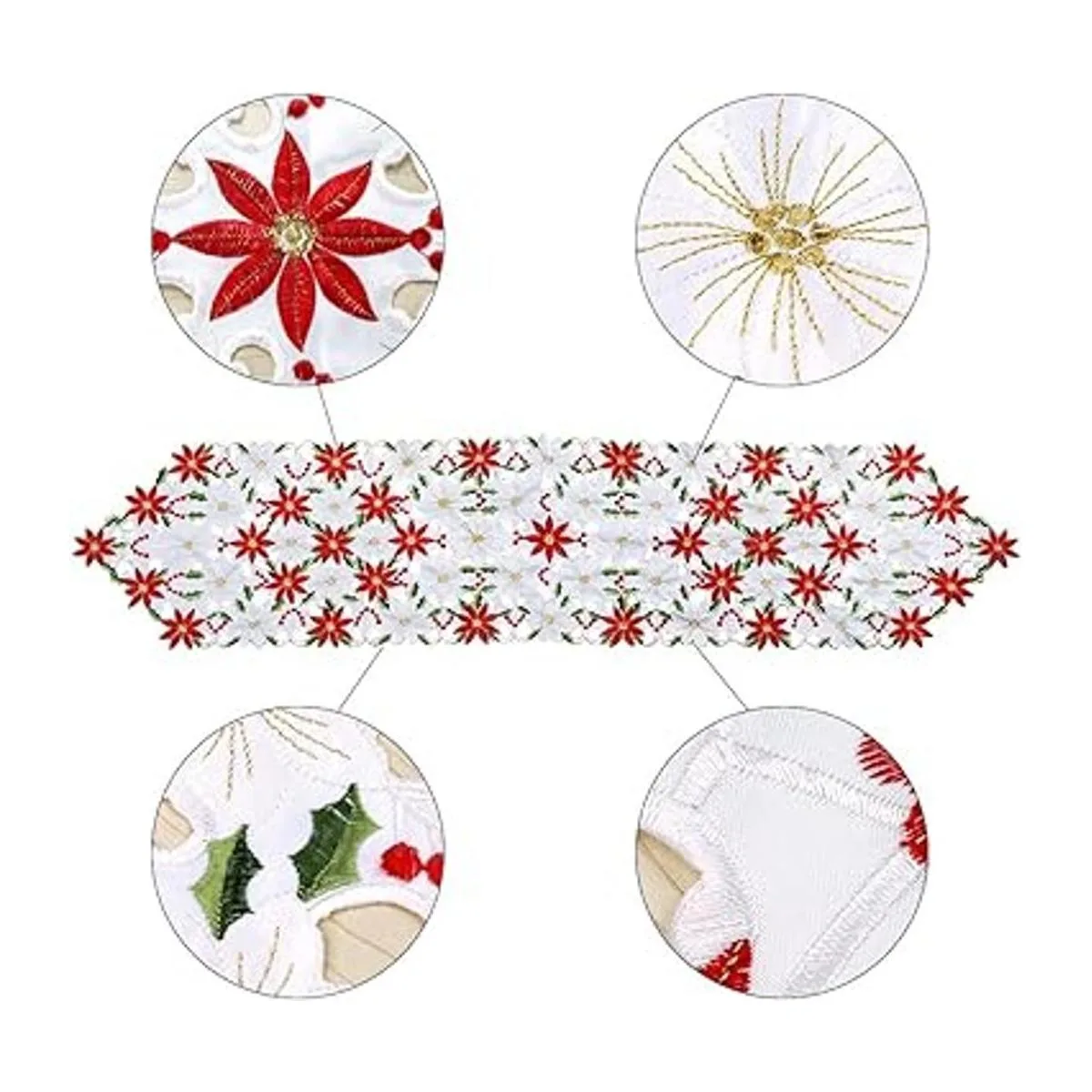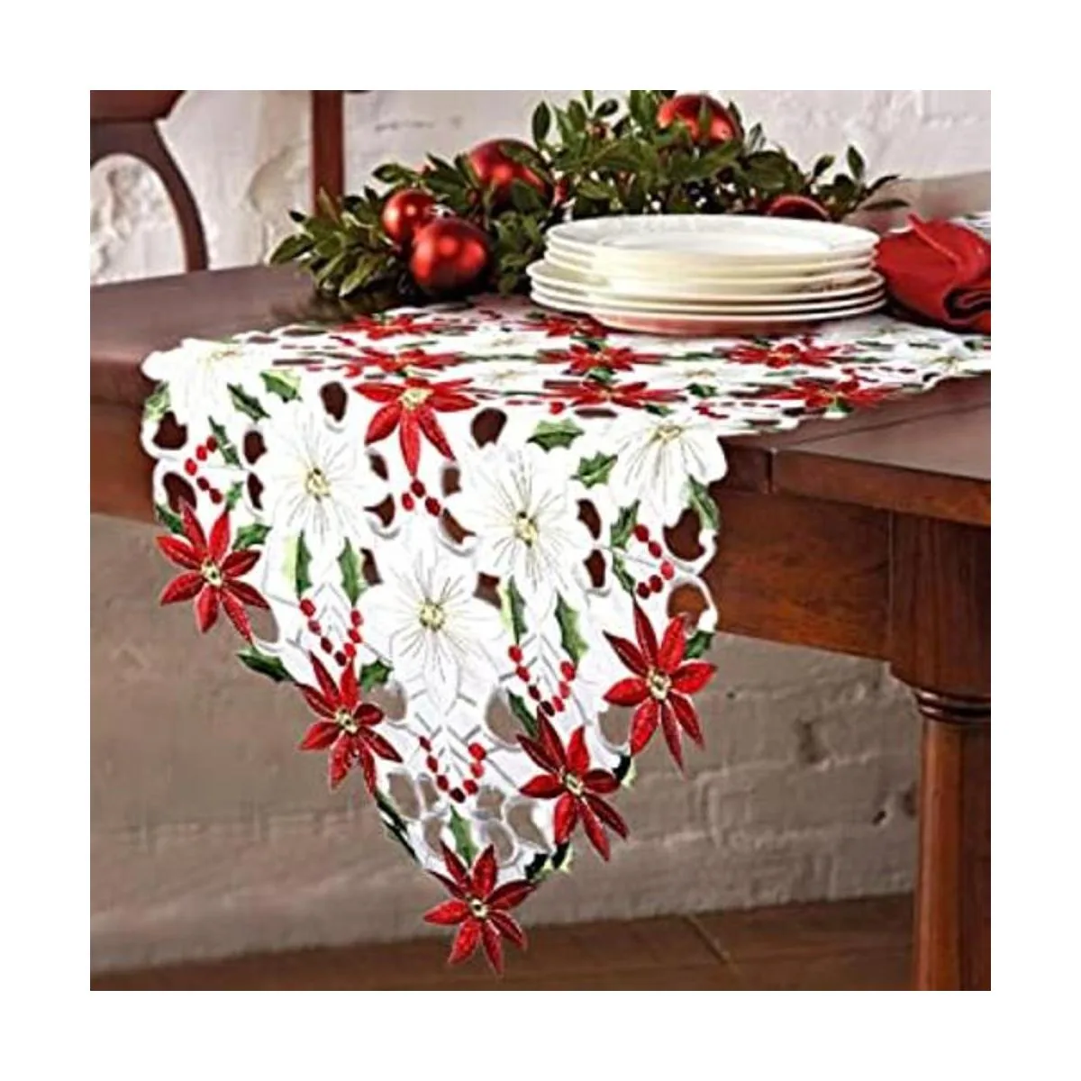 15 x 70 pulgadas, flor de Pascua navideña, acebo, bordado y llamativo calado para vestir tu mesa de Navidad