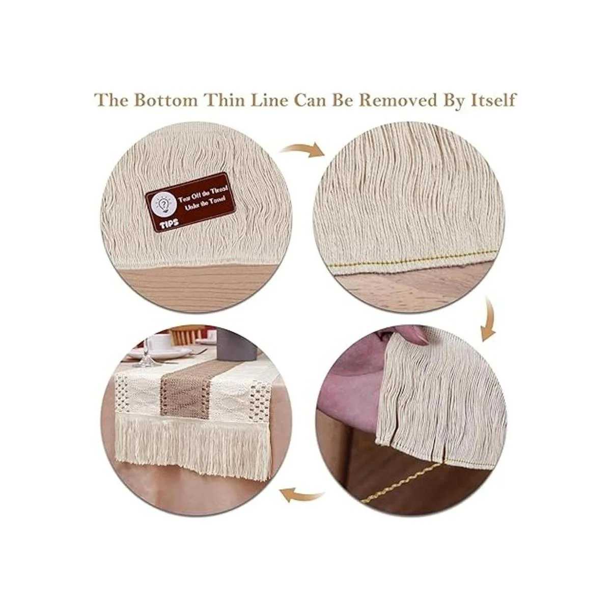 Diseño de doble capa: Delicada tela de algodón con rayas huecas con borla que da una sensación minimalista y crea una sensación relajada en la habitación. El estilo bohemio del camino de mesa evoca un sabor cálida y elegante que funciona armoniosamente y estéticamente con cualquier decoración y muebles.