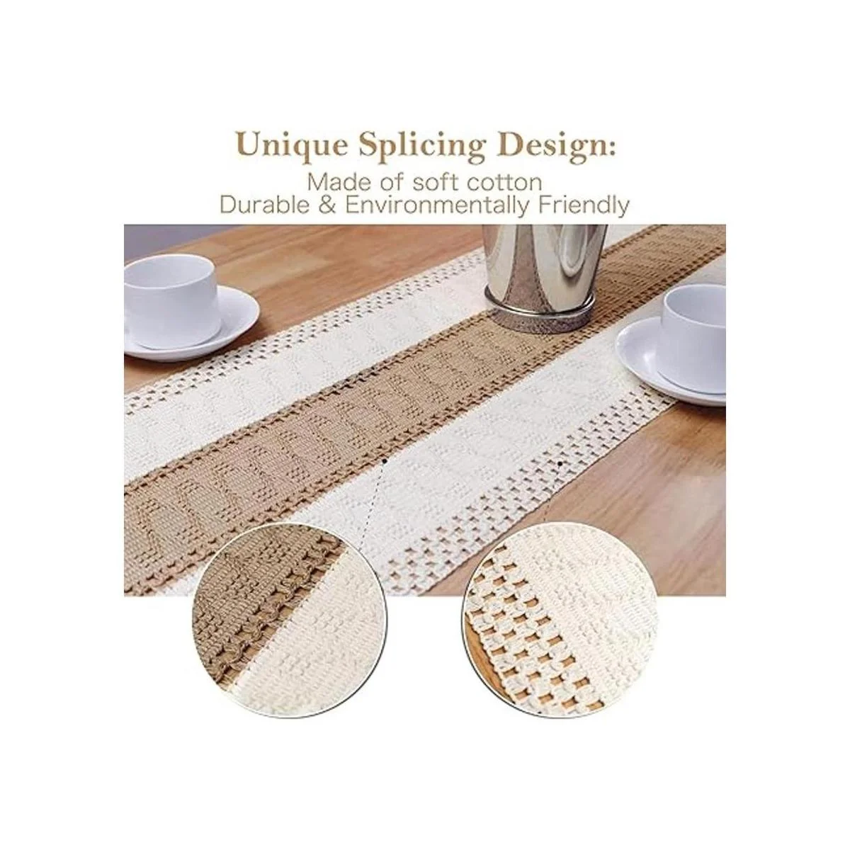 OurWarm Camino de mesa de macramé estilo granja, estilo bohemio, moderno, decoración rústica de algodón tejido de ganchillo para despedida de soltera, boda, cena, 72 x 12 pulgadas.