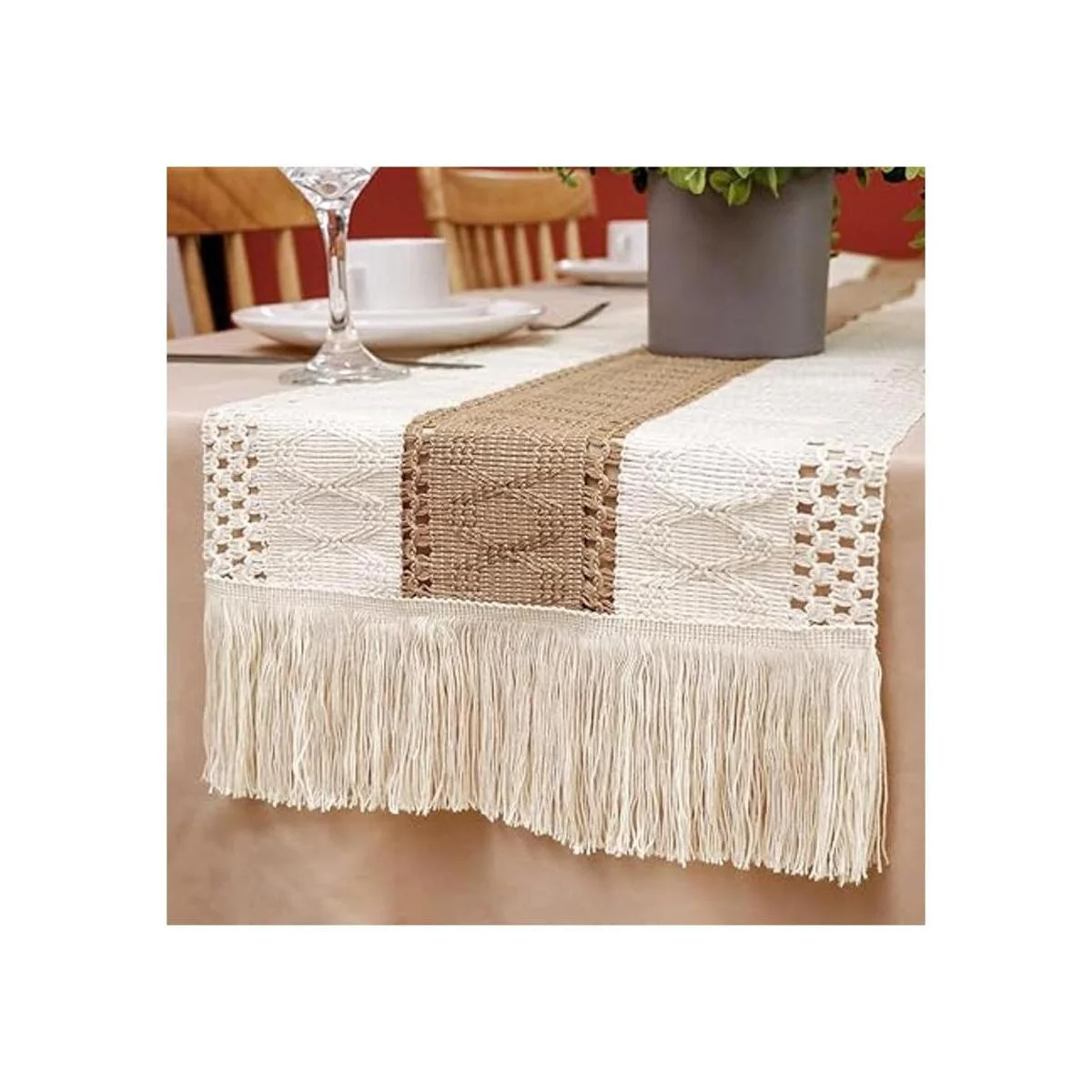 OurWarm Camino de mesa de macramé estilo granja estilo