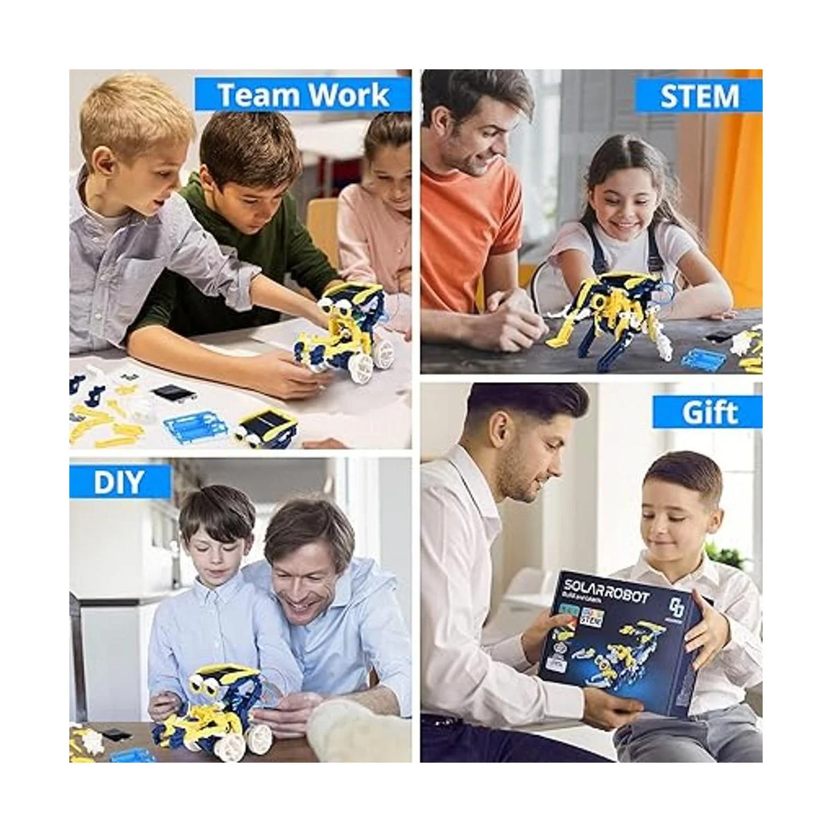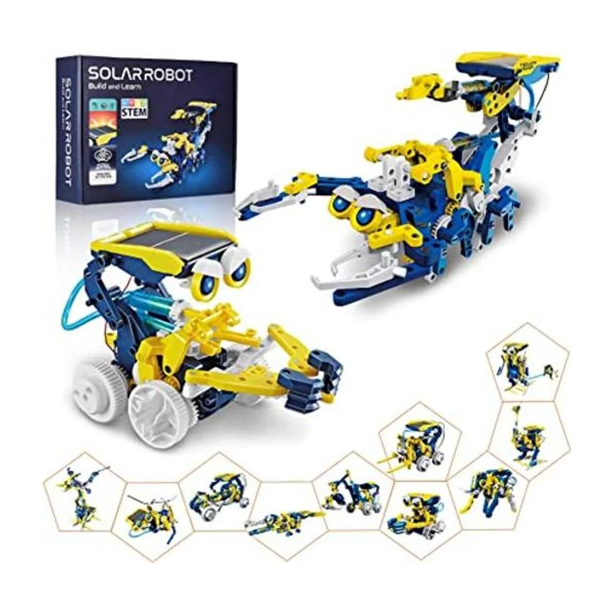 Robótica educativa de ciencia: este es un juguete robot solar STEM educativo y atractivo que puede enriquecer la mente de tu hijo con el desafío interactivo de construir sus propios proyectos y mejorar sus habilidades prácticas. 11 estilos de montaje no solo involucran a tu hijo, sino que también incorporan muchos conocimientos básicos de ingeniería científica para mejorar sus habilidades creativas. Si tu hijo sueña con ser un gran inventor, creemos que este juguete será la clave para abrir esa puerta.