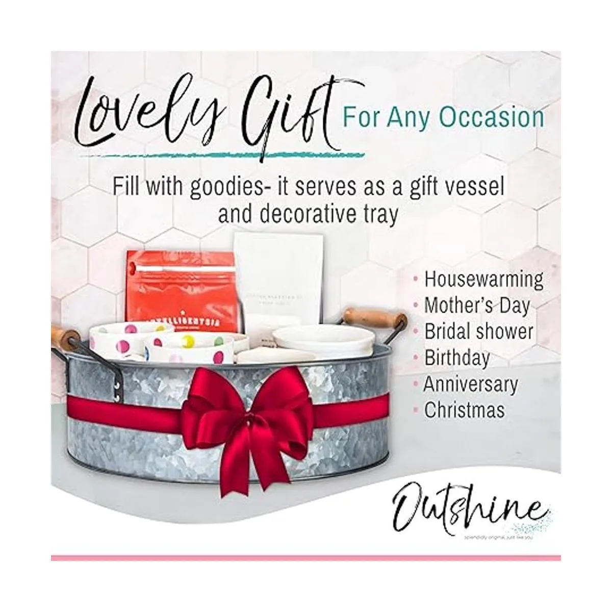 Gran decoración de temporada e idea de regalo: inauguración de la casa o cumpleaños, día de la madre, boda, despedida de soltera, aniversario, vacaciones o cualquier otra cosa, esta tina de acero galvanizado vintage es un regalo bonito y funcional. También es un llamativo centro de mesa para Pascua, 4 de julio, Acción de Gracias y celebraciones de Navidad.