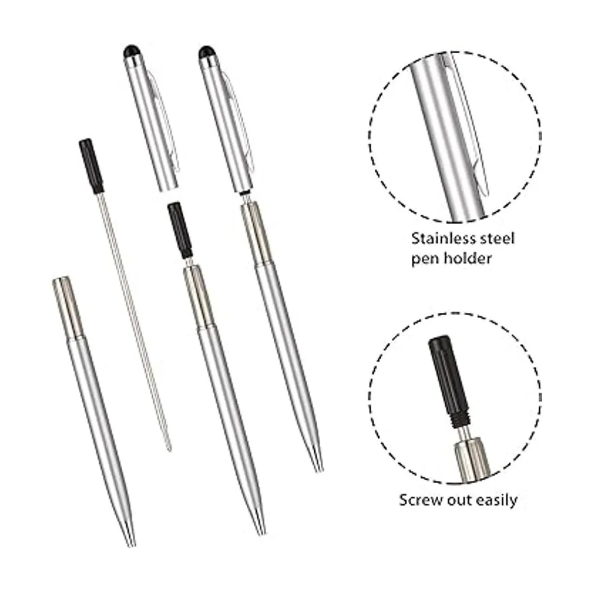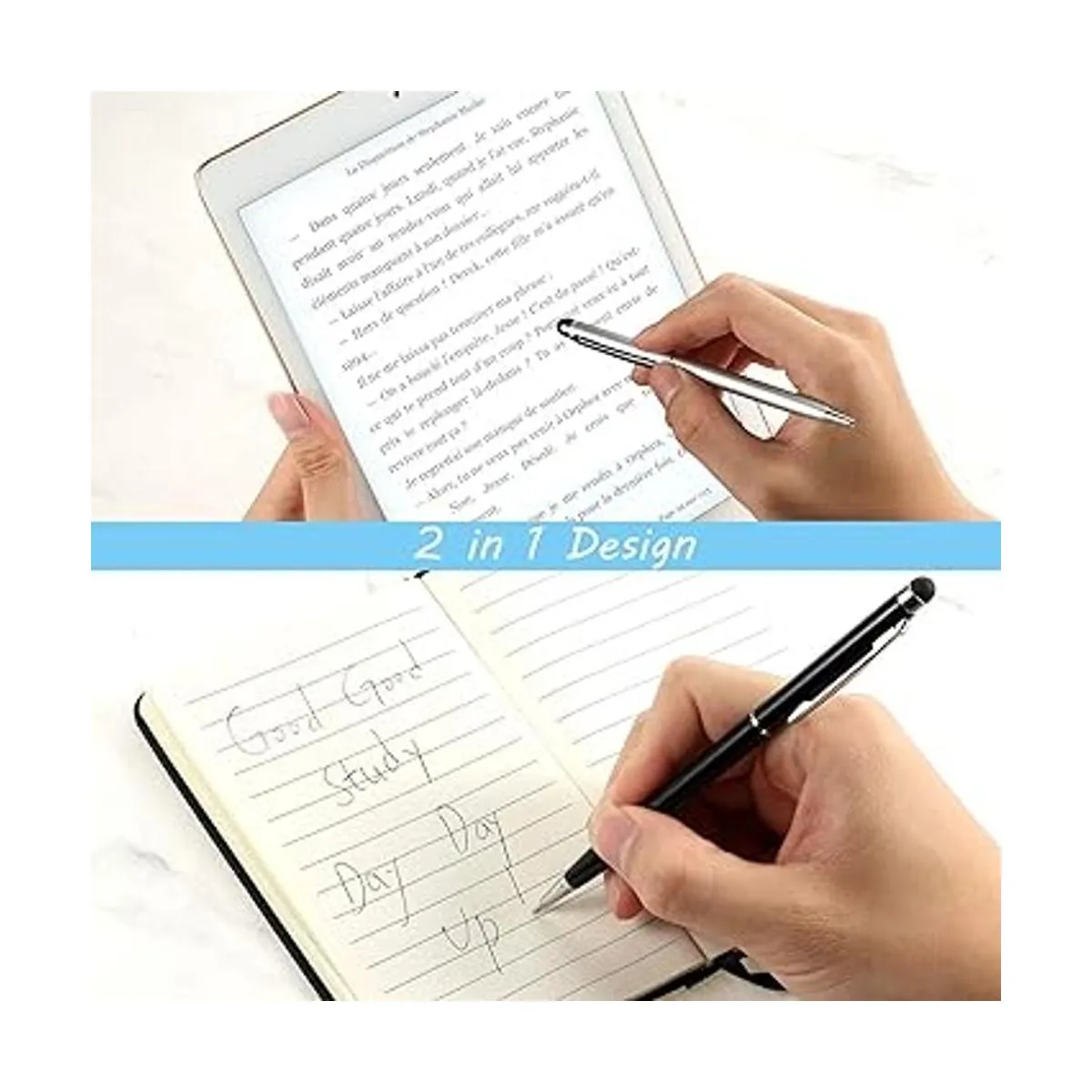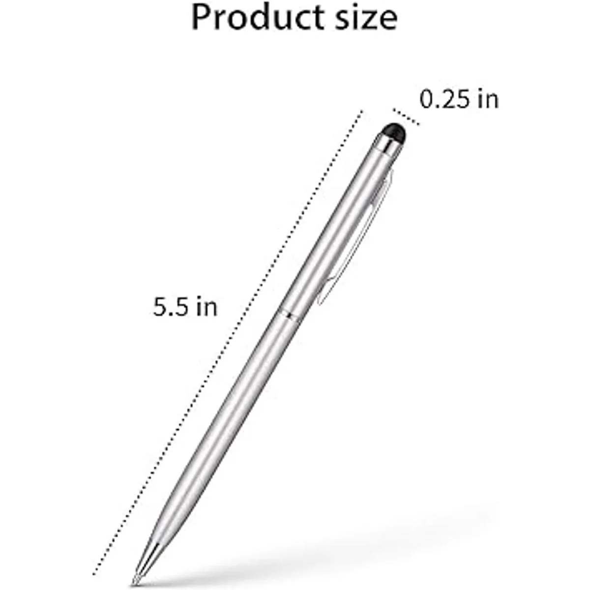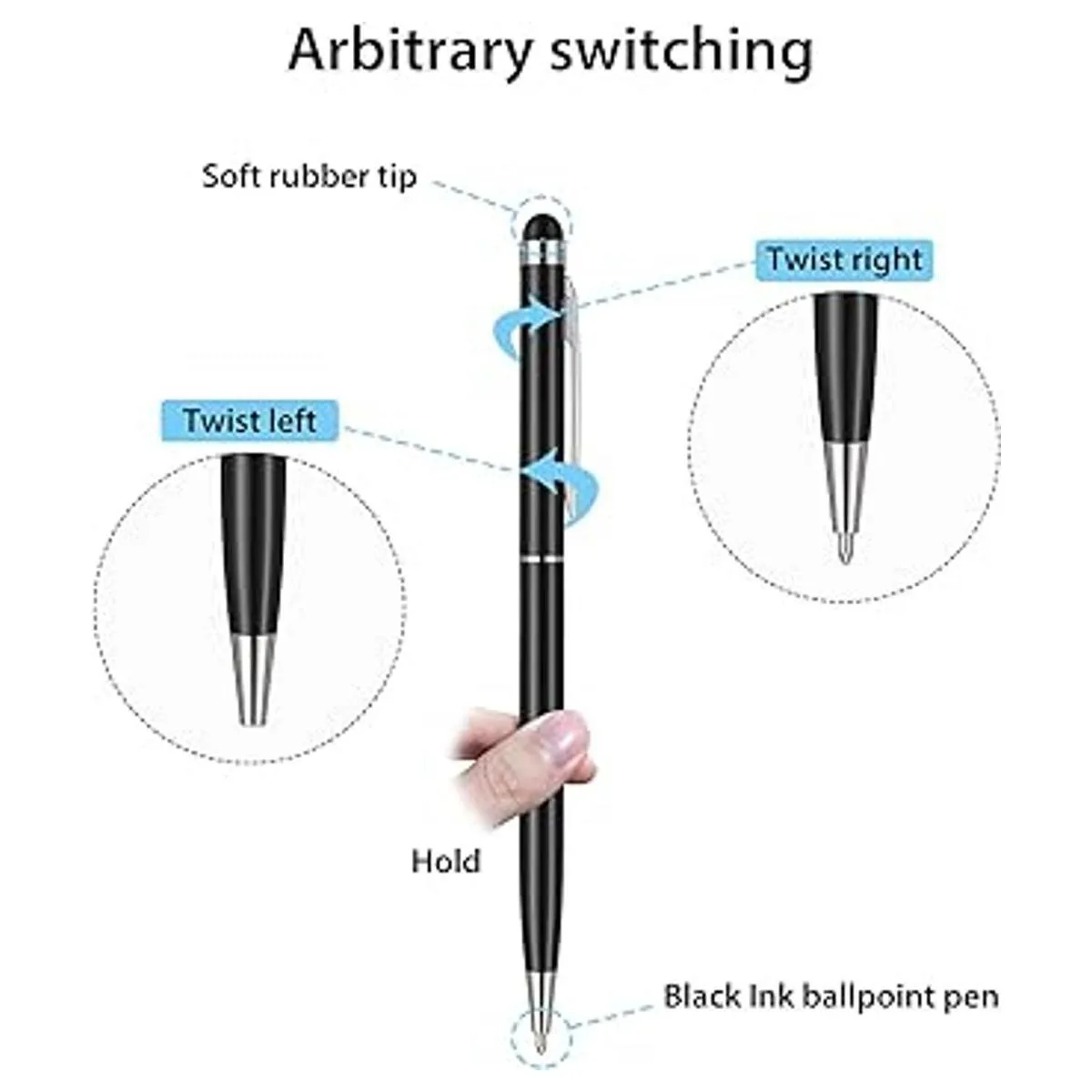 Diseño 2 en 1: este producto puede funcionar tanto como un lápiz óptico como un bolígrafo, un lado contiene lápiz capacitivo de alerta para pantallas táctiles, gira el cuerpo del lápiz para extender el bolígrafo de tinta negra en el otro lado para una escritura cómoda