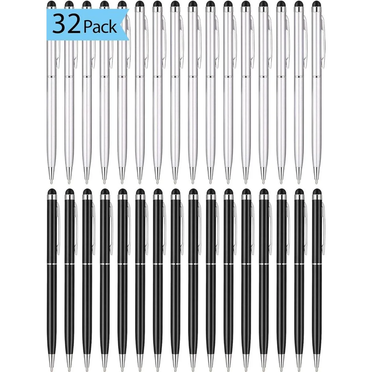 Outus 32 lápices capacitivos para pantallas táctiles, 2 en 1 universal punta fina lápiz de metal, tinta negra, para la mayoría de la pantalla táctil capacitiva del teléfono Tablet negro, plateado