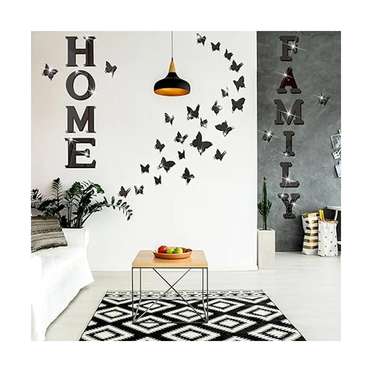 Outus Letras 3D para el hogar de la familia, decoración de la sala de estar, decoración de pared rústica de granja, espejo de acrílico, calcomanías decorativas de pared para sala de estar, dormitorio, cocina negro