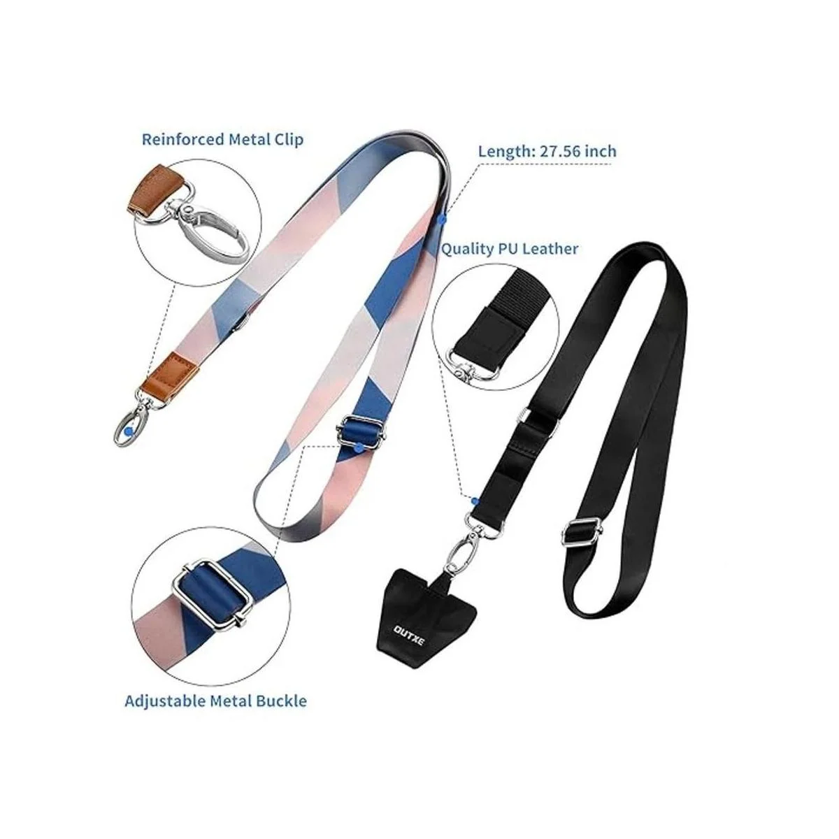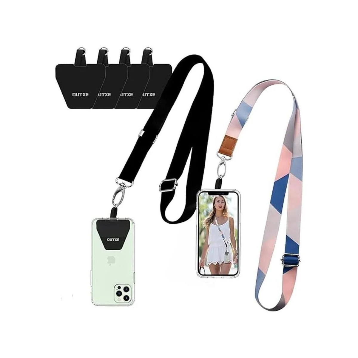 OUTXE Cordón para teléfono paquete de 2 correas ajustables para el cuello, 4 almohadillas con adhesivo, cordón de nailon para teléfono celular compatible con todos los teléfonos inteligentes