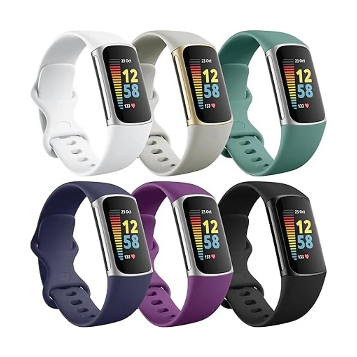 Ouwegaga Compatible con Fitbit Charge 5 Band para mujeres y hombres, correa deportiva suave e impermeable de repuesto para Fitbit Charge 5 Advanced Fitness Tracker, paquete de 6 unidades S