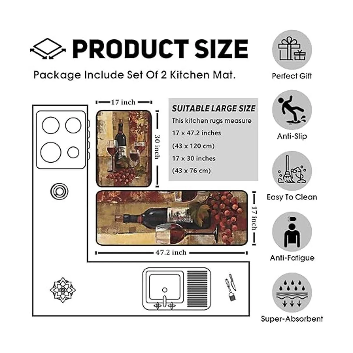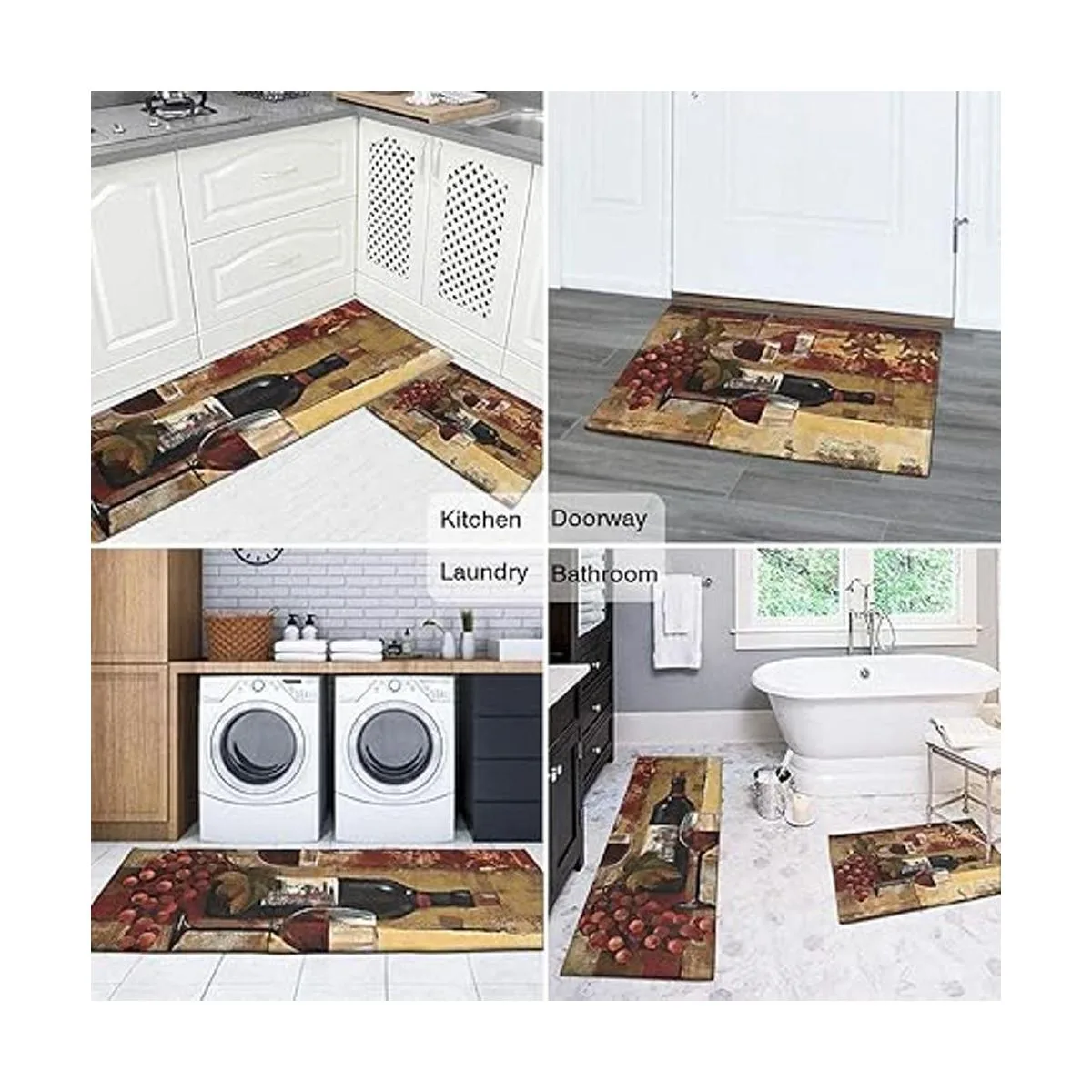 OUXIOAZ Alfombras y tapetes de cocina de vino 2 piezas