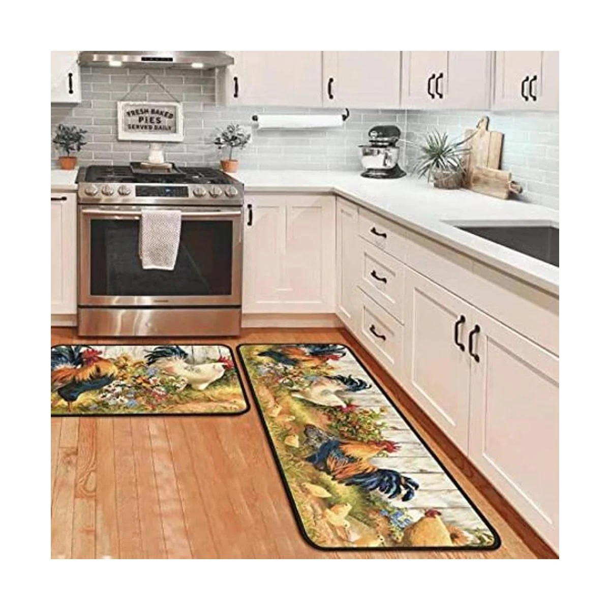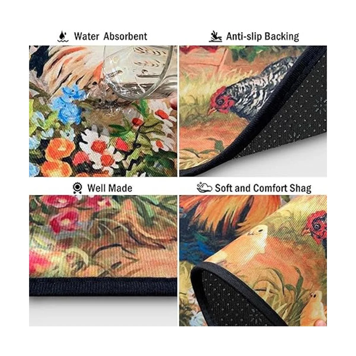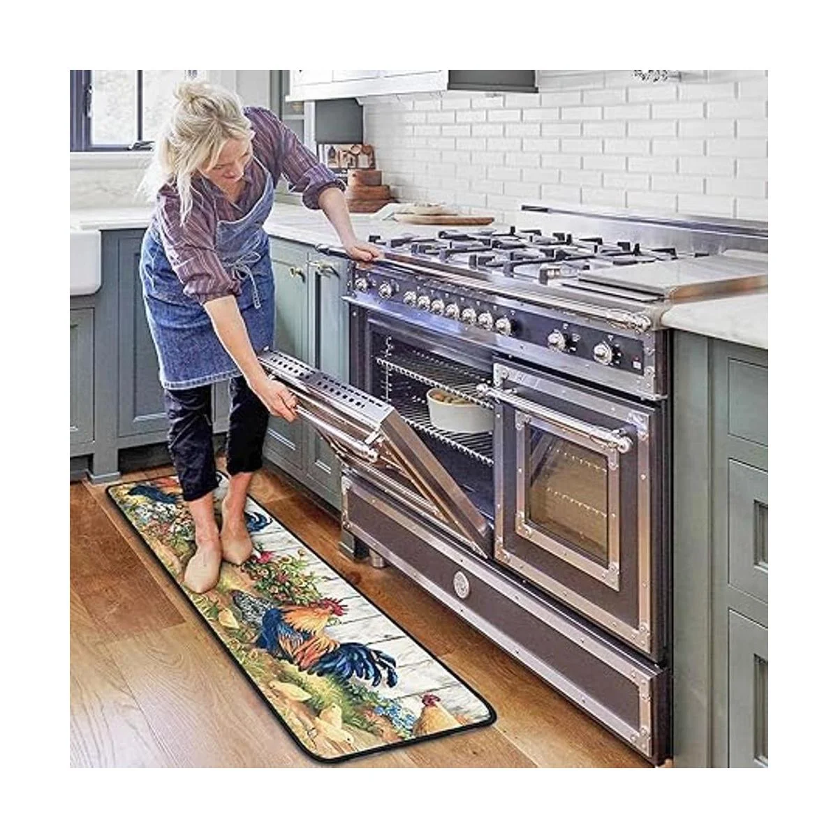 Multiusos: juegos temáticos de decoración de cocina de gallo. Este tapete de cocina antifatiga es perfecto para el suelo de la cocina del hogar, oficina de escritorio de pie, delante del fregadero, delante de la estufa, también adecuado para puertas, dormitorios, habitación de los niños, lavanderías, comedor, restaurante, hotel, banquete, porche, entrada, balcón, al aire libre y mucho más.
