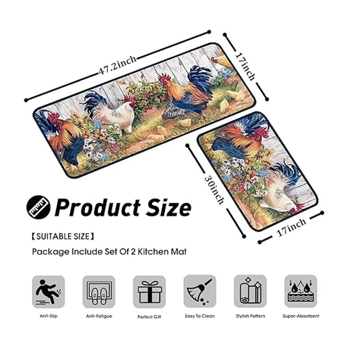 OUXIOAZ Juego de 2 alfombras y tapetes de cocina de gallo antideslizantes, lavables, absorbentes, de microfibra para piso, antifatiga, decoración de cocina, resistentes a las manchas, 17 x 47.2 pulgadas 17 x 30 pulgadas
