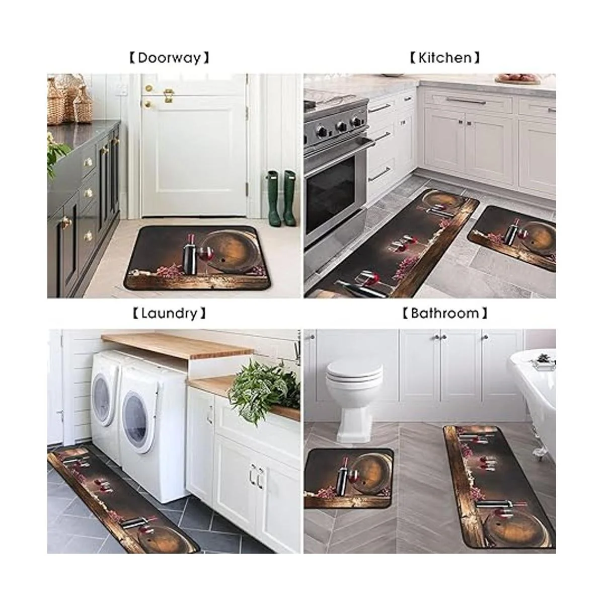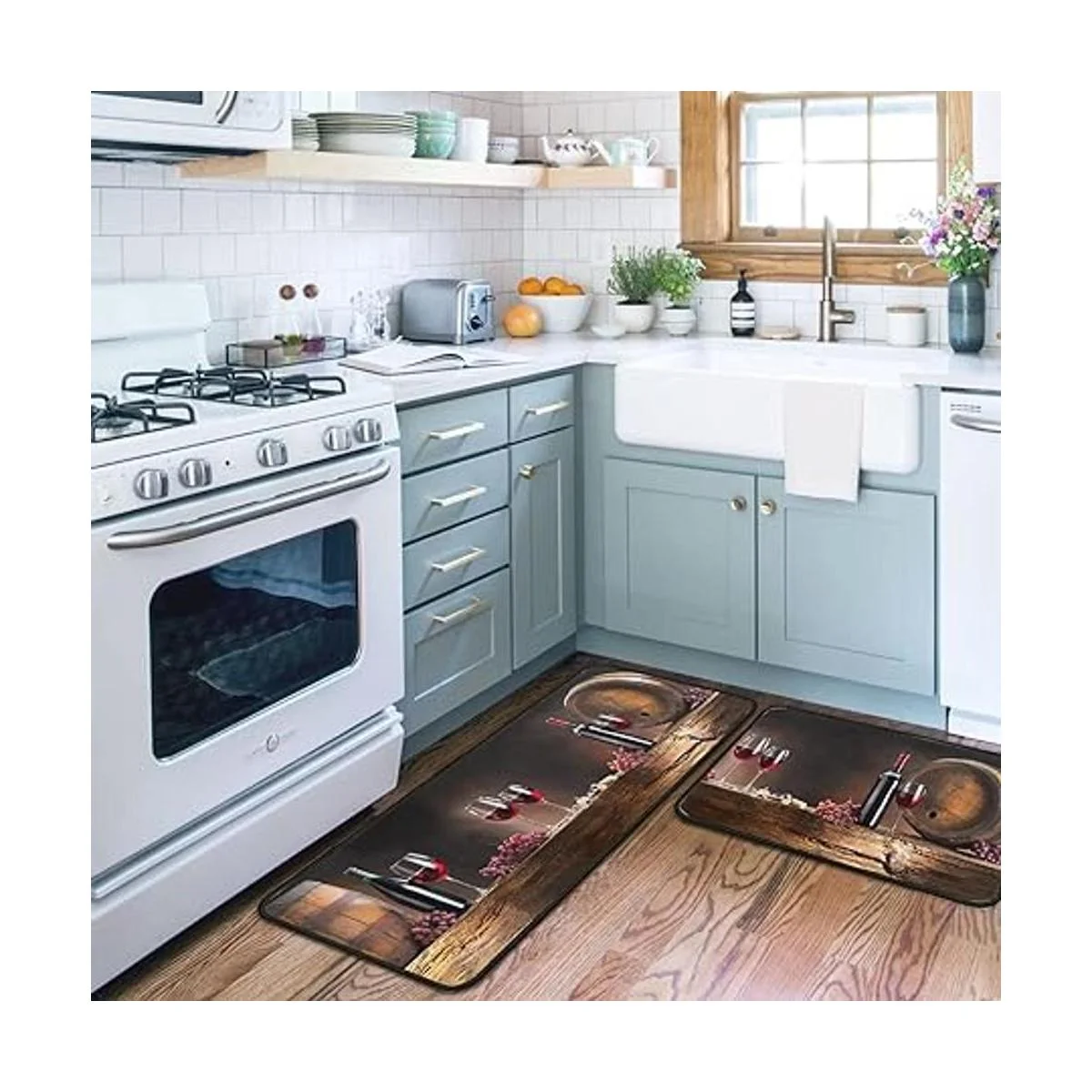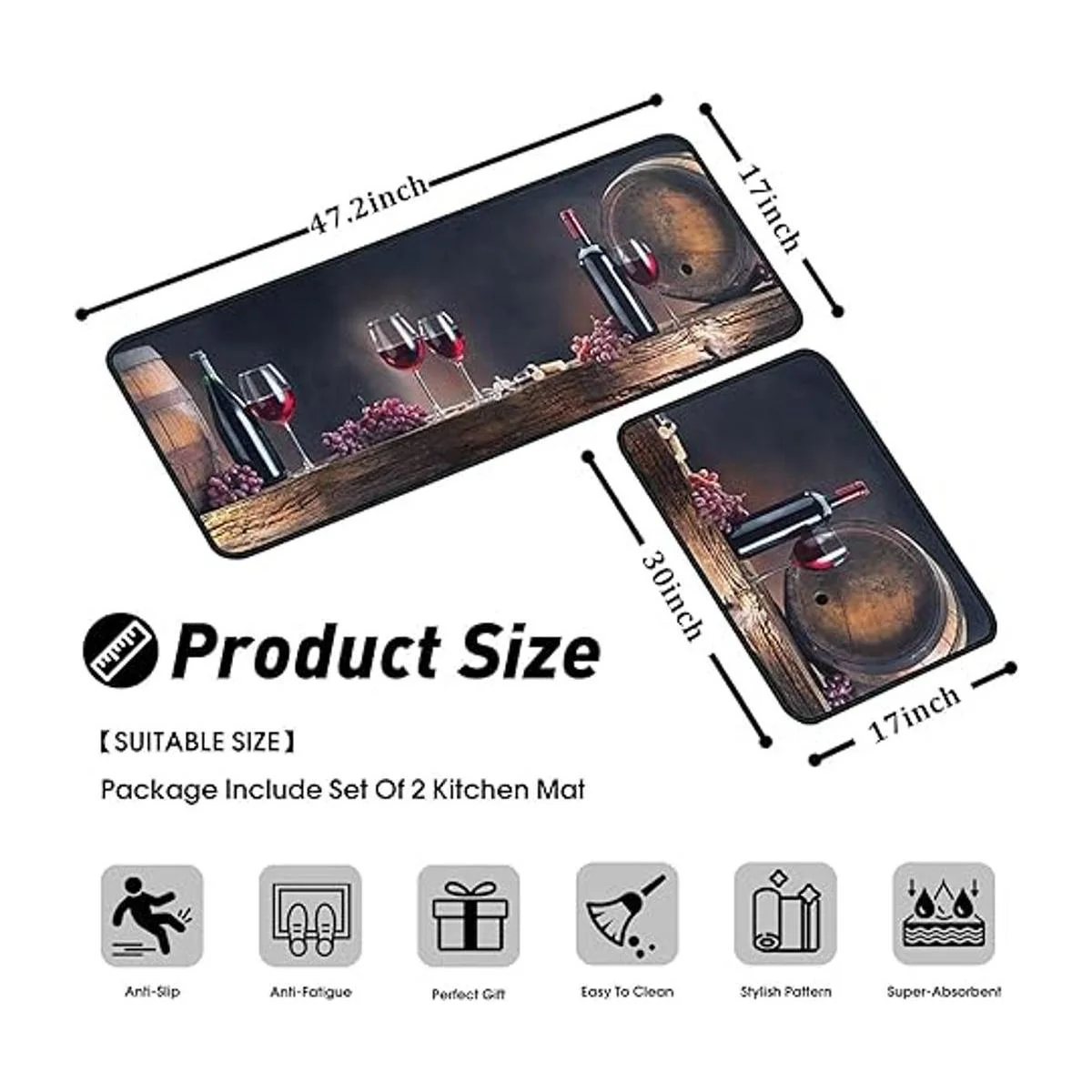 OUXIOAZ Juego de 2 alfombras y tapetes de cocina de vino, antideslizantes, lavables, absorbentes, de microfibra para piso, antifatiga, decoración de cocina de vino, resistentes a las manchas, 7 x 47.2 17 x 30 pulgadas