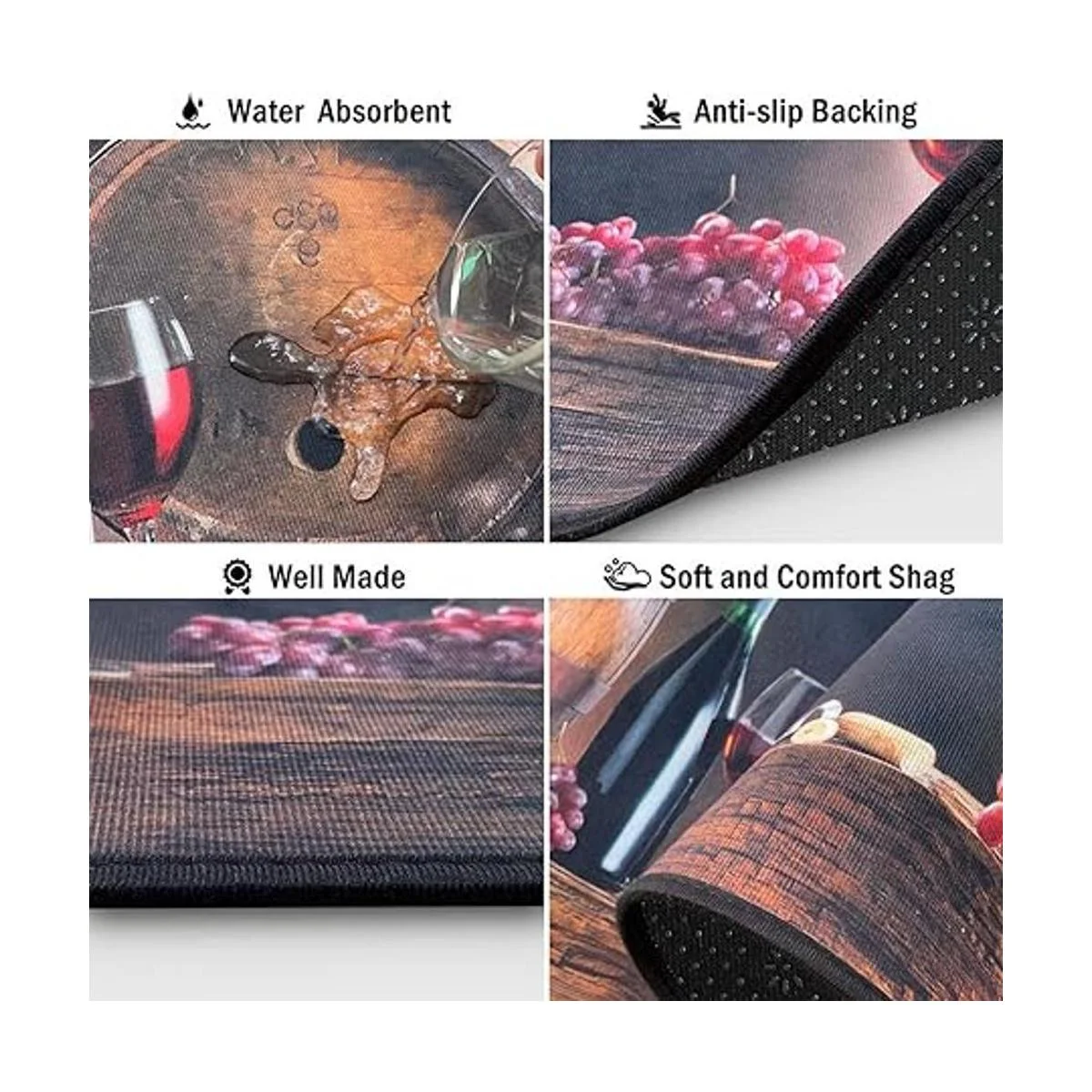 Súper absorbente de agua: estas alfombras de cocina de vino y uva están fabricadas con microfibra absorbente de agua, que absorbe el agua y se seca rápidamente, protege el suelo de tu cocina de la humedad y las manchas, y mantiene su buen pie como nuevo.
