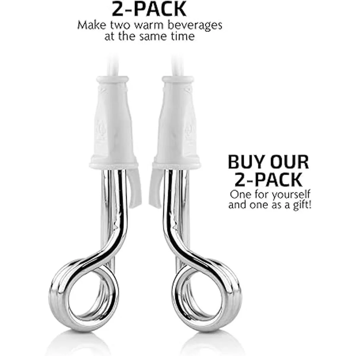 Ovente Calentador eléctrico de inmersión de acero inoxidable para té, café y bebidas, calentador de agua caliente instantáneo sumergible de 300 W, peso ligero, fácil de calentar y limpiar, color blanco, paquete de 2 unidades CH3012