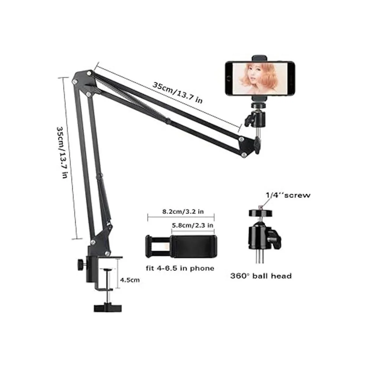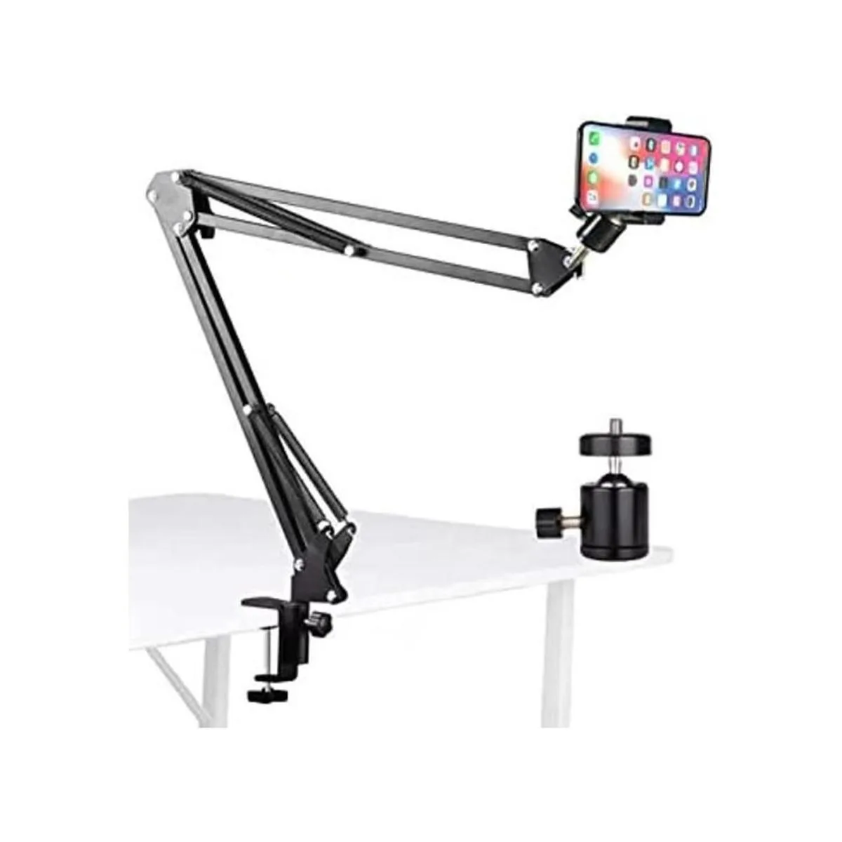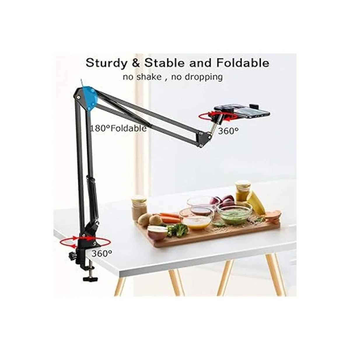 Overhead Video Mount Articulating Arm,Cell Phone Holder, Webcam Stand Lazy Desk Arm Clamp Desktop Suspension Scissor Accessory for Flat Photography Videography Recording LivestreamBlack