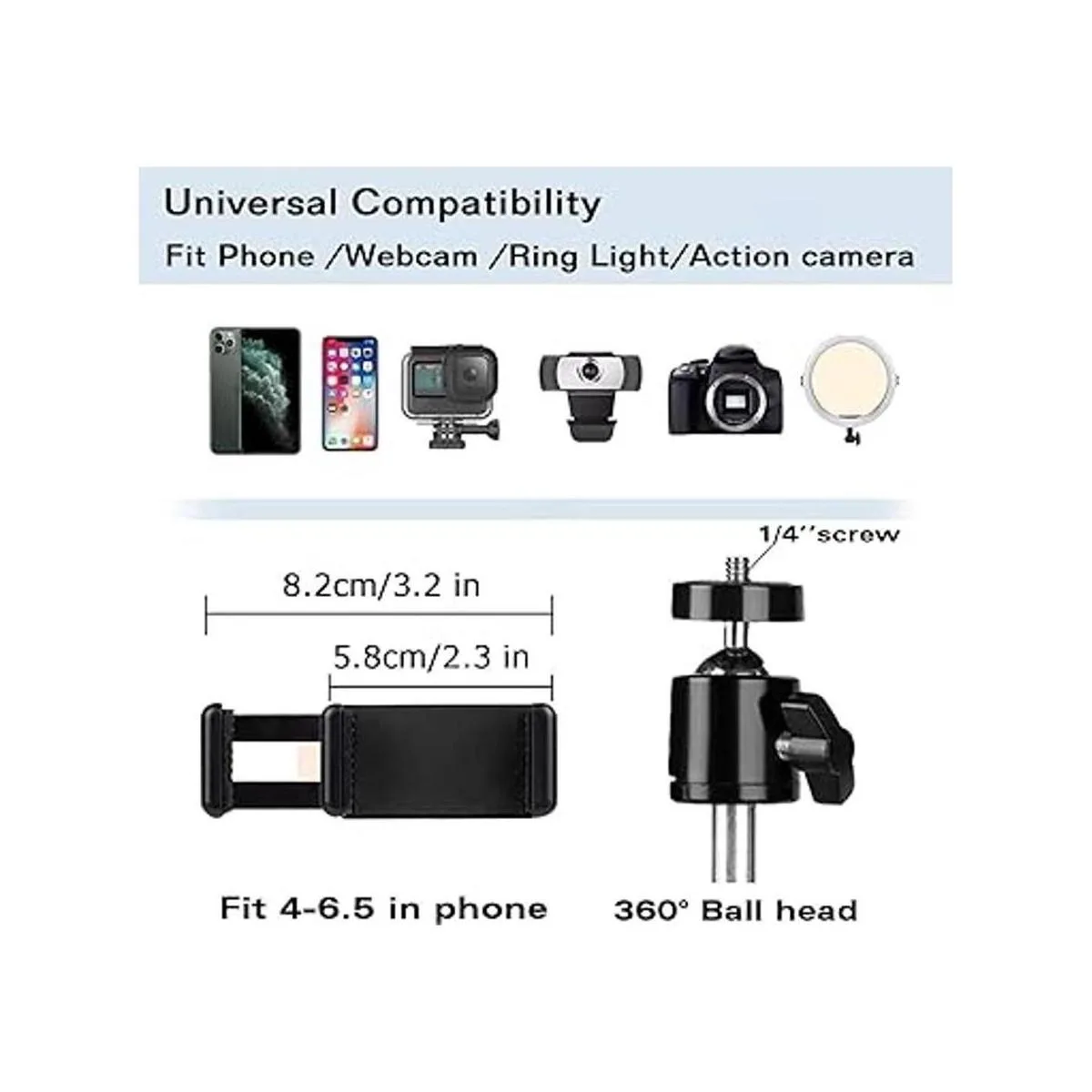 1/4 screw universal ball head This overhead video stand has a 1/4 screw ball head and a phone clamp, which has 1/4 inch screw hole on the phone holder side and bottom . fit phones max width 8.0 cm for iPhone 13/12/12 PRO/ XR,XS,XS Max,X,8,8 plus,7,7 plus,6s/Samsung S20/A21S/A51/A71/A10s/for huawei,for xiaomi ect.
