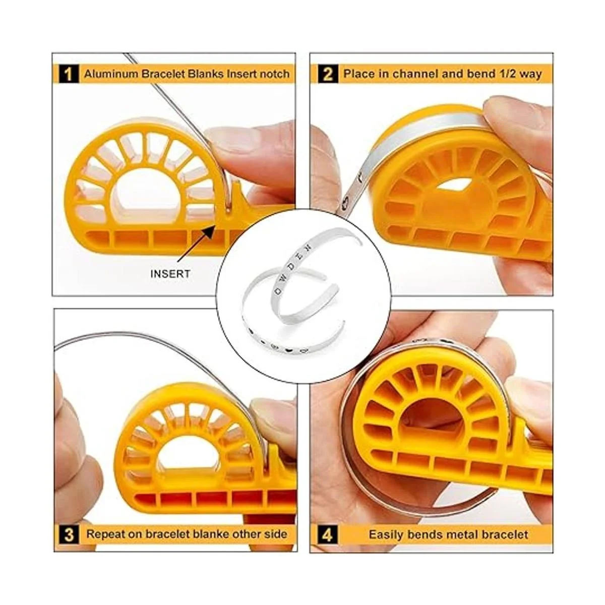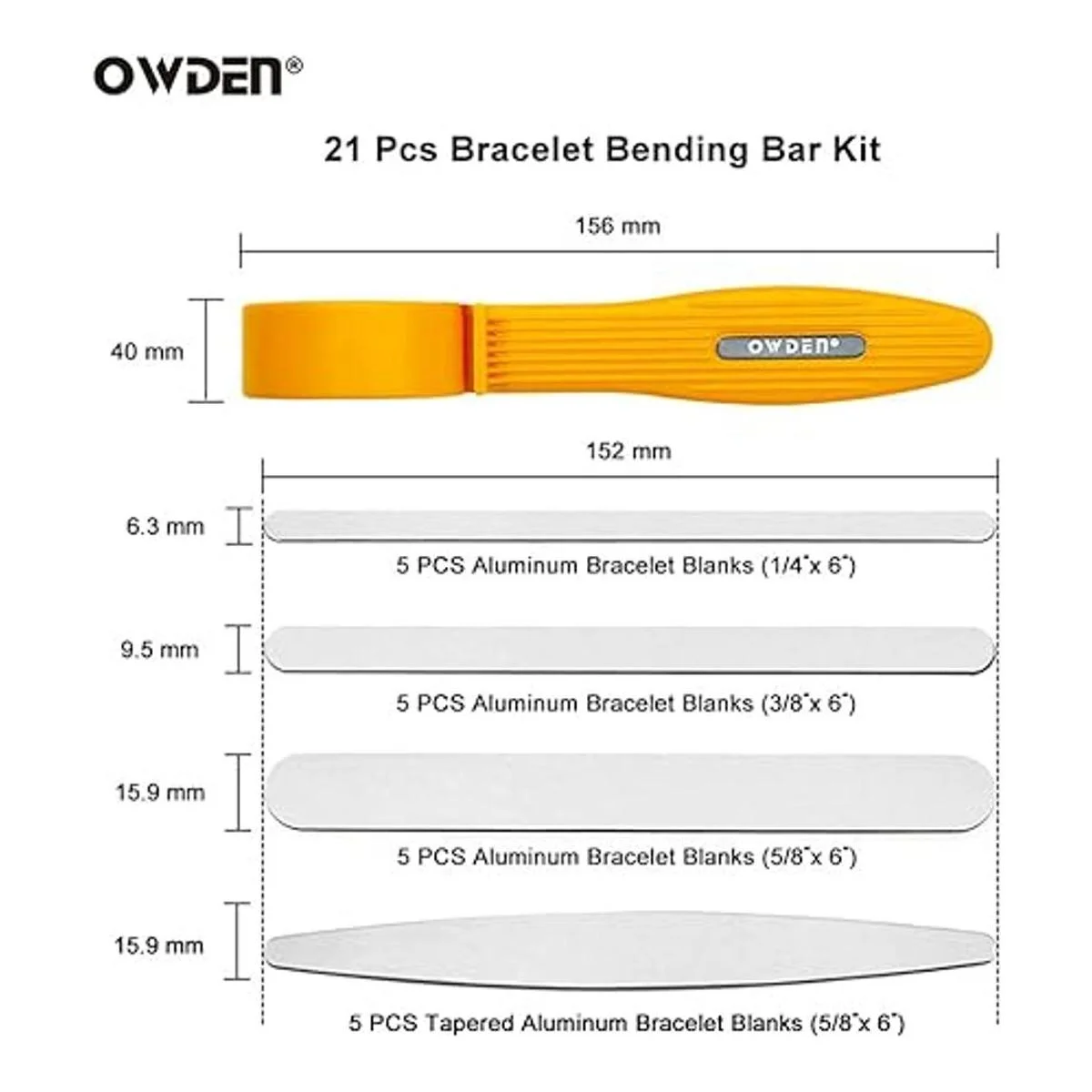 OWDEN 21 herramientas de estampación de metal, 20 unidades, pulseras de aluminio en blanco 4 tamaños con una bonita barra de doblado, juego de herramientas de sellos de metal para trabajos de estampación de joyas.