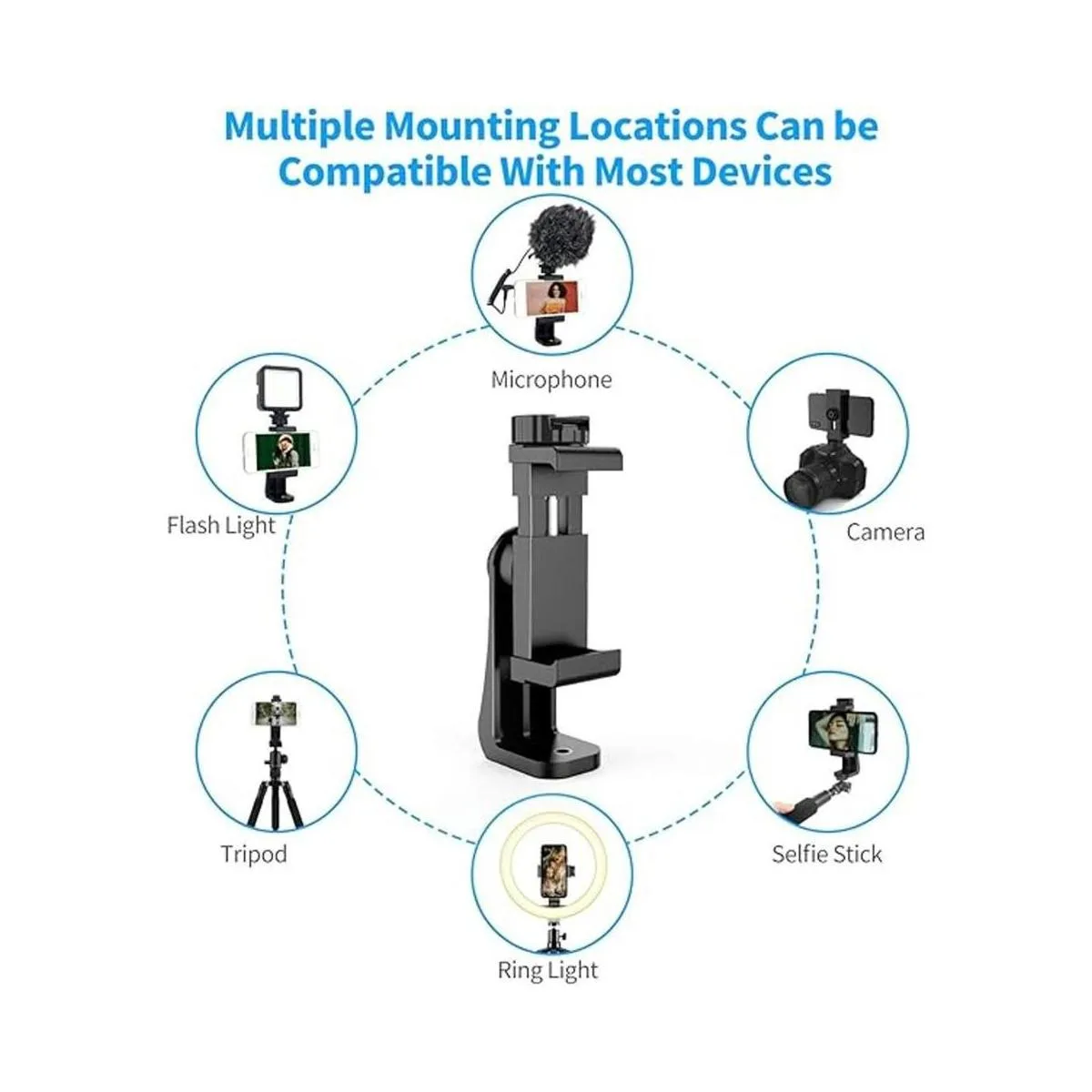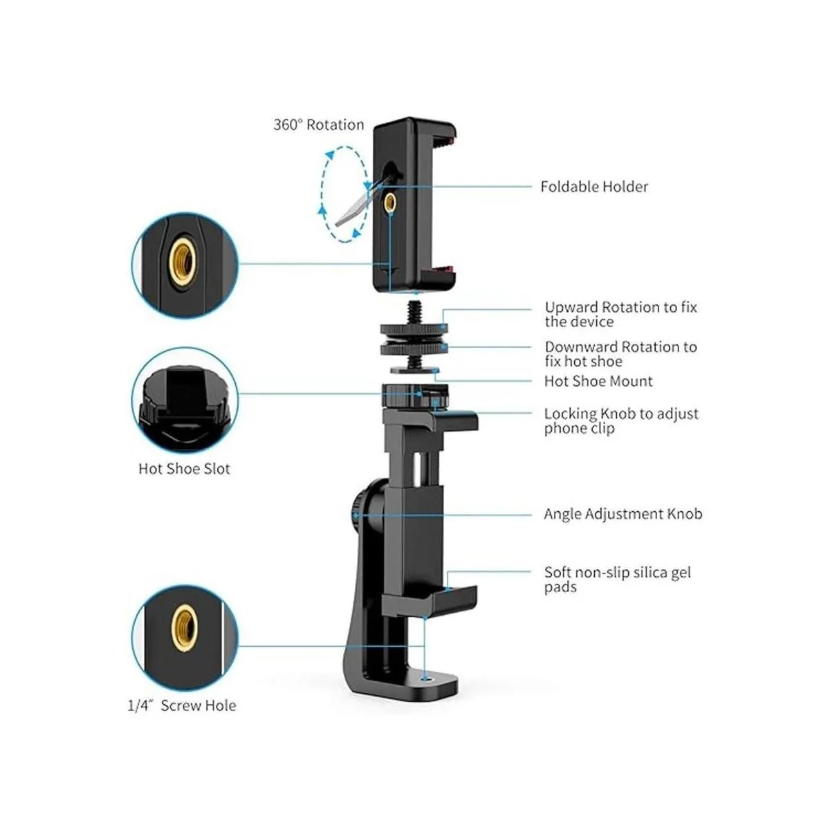 Diseño innovador: el soporte único para teléfono dual con un diseño de soporte de zapata fría puede satisfacer tu uso simultáneo de dos accesorios de montaje de trípode, mejor y considerado para cuidar tus necesidades diarias de transmisión en vivo y fotos