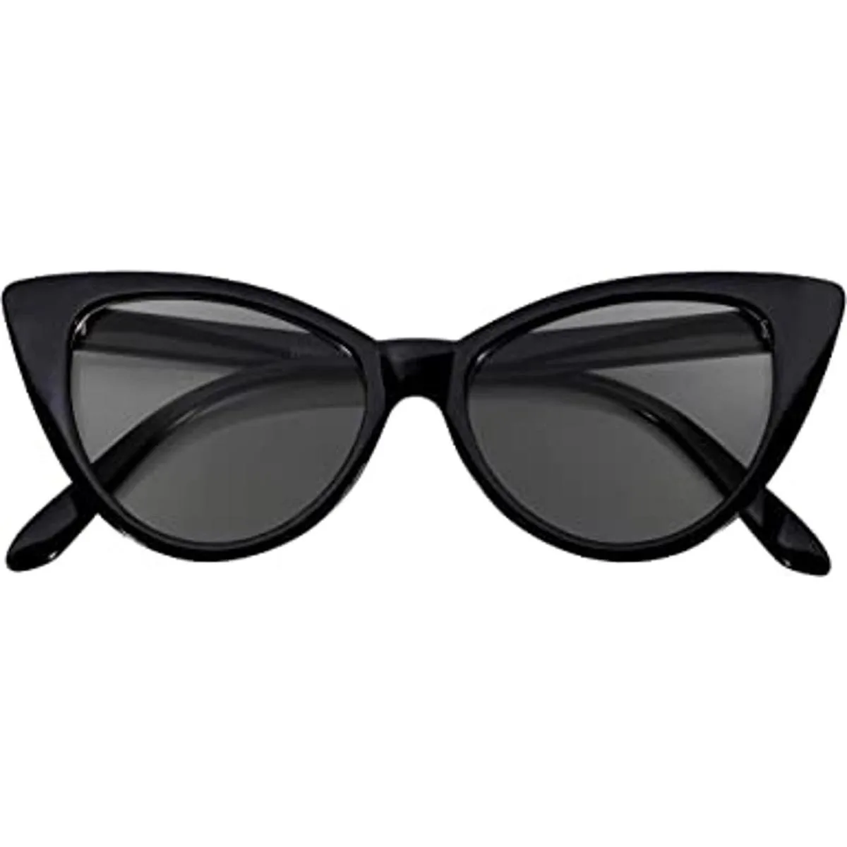OWL Cateye Gafas de sol para mujer, vintage, de moda, de los años 50, con montura negra, lentes ahumadas, Negro