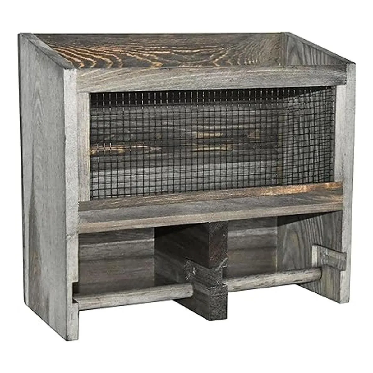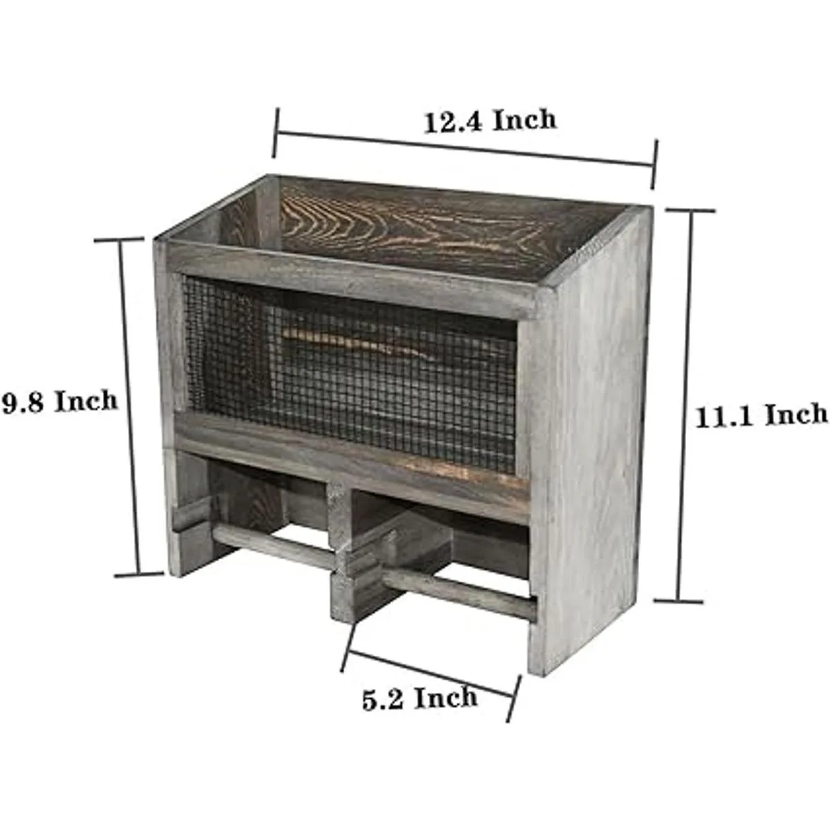 OwlGift Dispensador de rollo de papel higiénico doble de madera maciza y malla de metal, color gris vintage