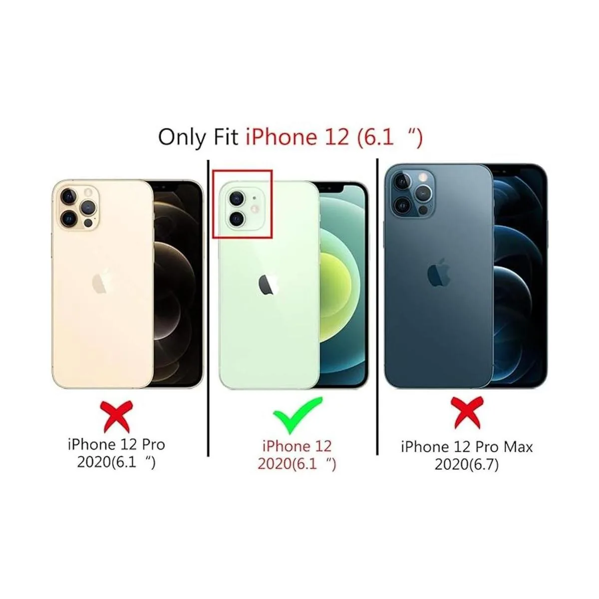 Compatible con especialmente diseñado para iPhone 12. No es compatible con iPhone 12 Pro de 15.5 cm/6.1 pulgadas, soporte para carga inalámbrica.