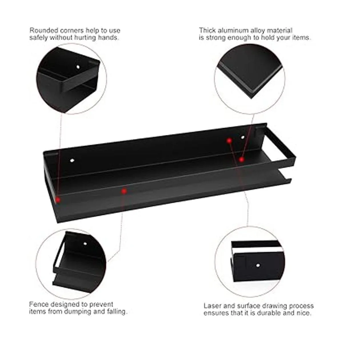OwnMy Estante de ducha de acero inoxidable para baño, cesta de cocina, estante rectangular de metal, resistente al óxido, estantes flotantes montados en la pared, estante rectangular de 16 pulgadas, color negro