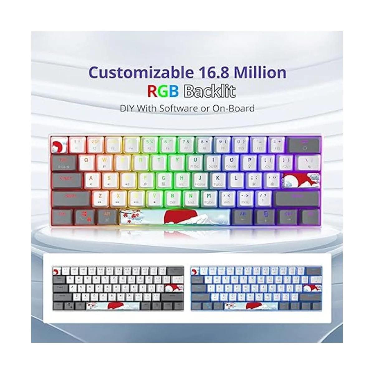 Diseño clásico 60 compacto: teclado pequeño compacto 60 mecánico con interruptores lineales equivalentes a rojo mx, sonido de clic silencioso acción rápida con mínima resistencia sin una sensación de golpe táctil