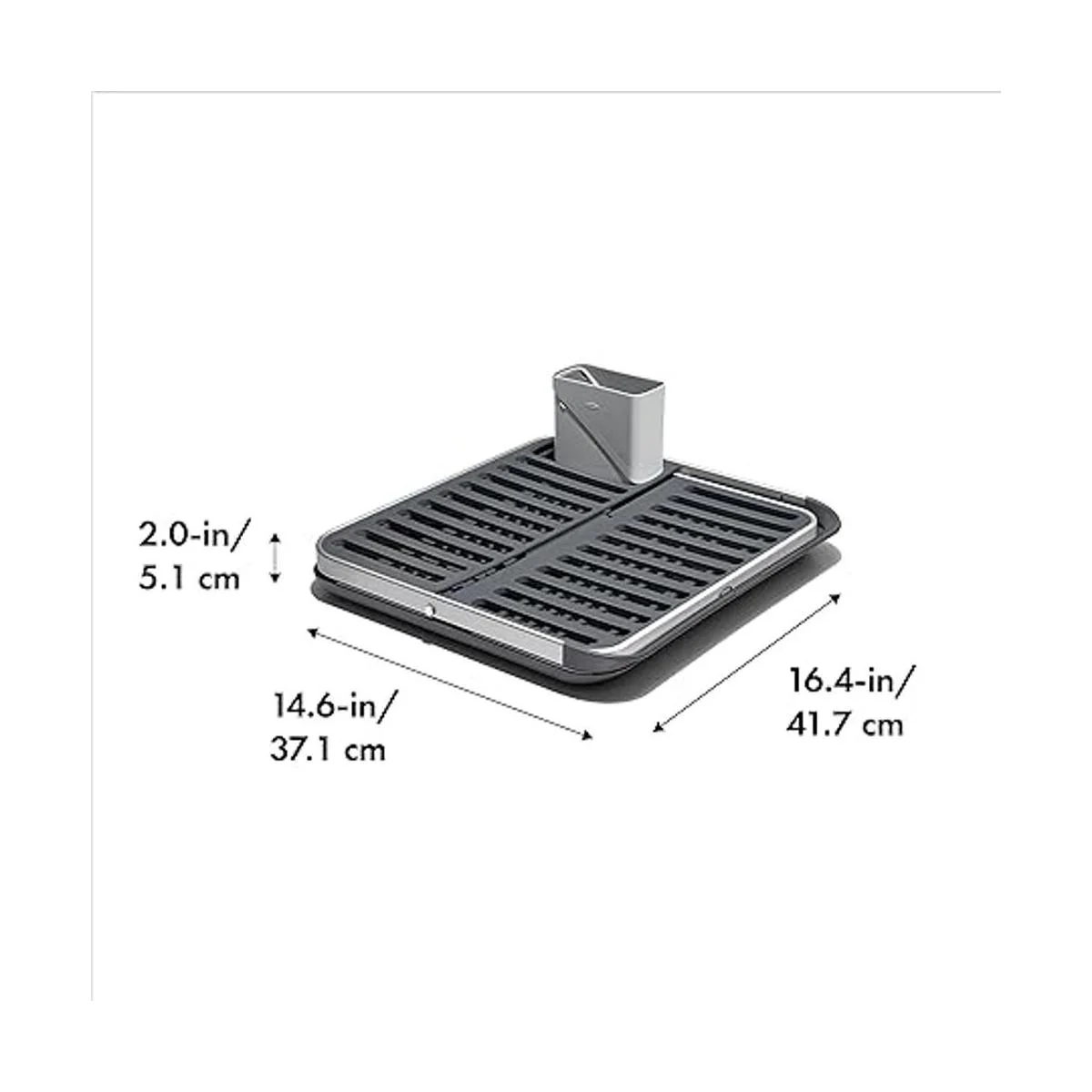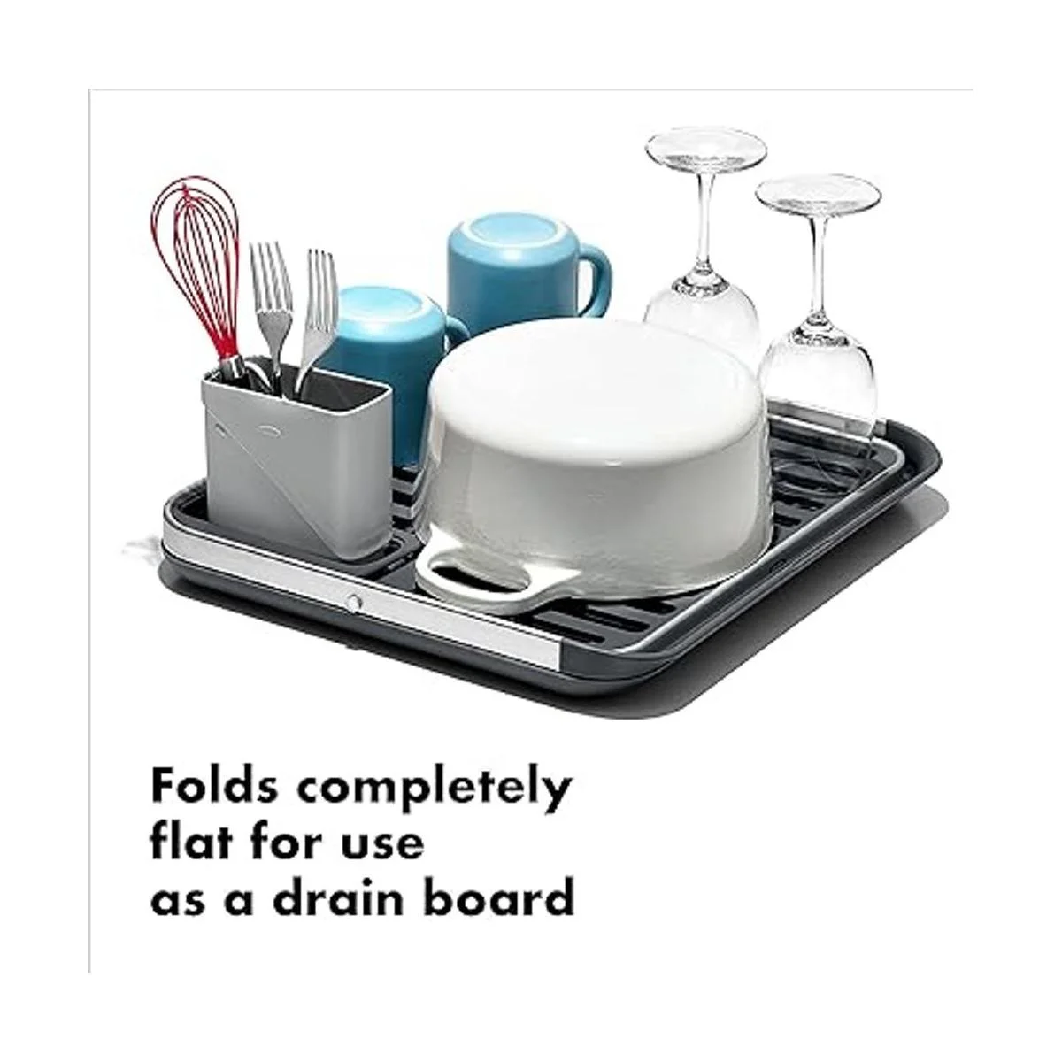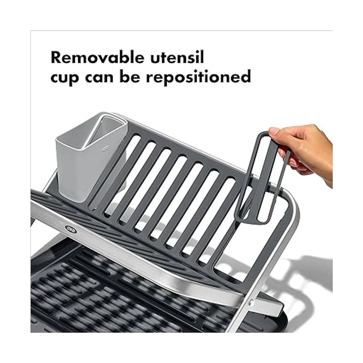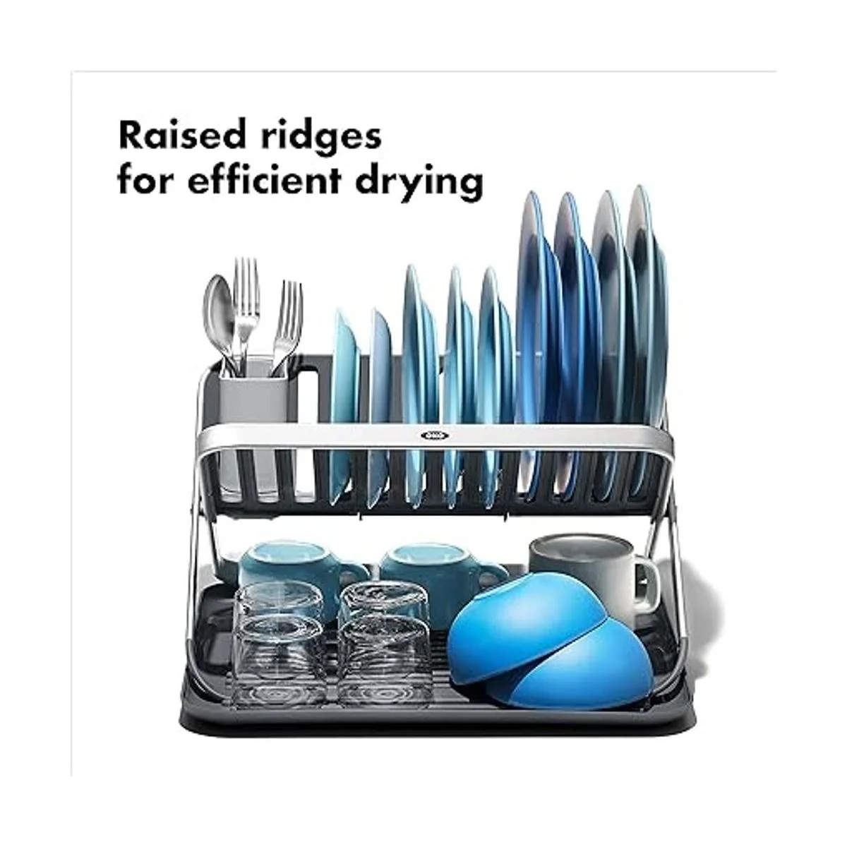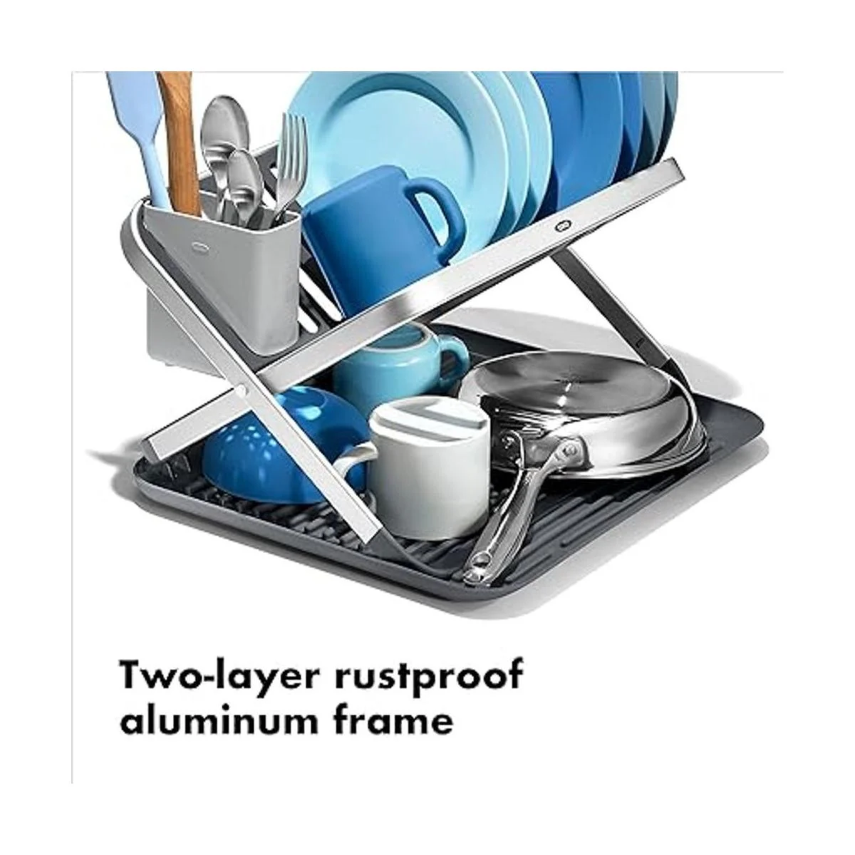 OXO Good Grips Escurridor de platos plano plegable de aluminio, 2 niveles, con escurridor, para encimera de cocina, plegable