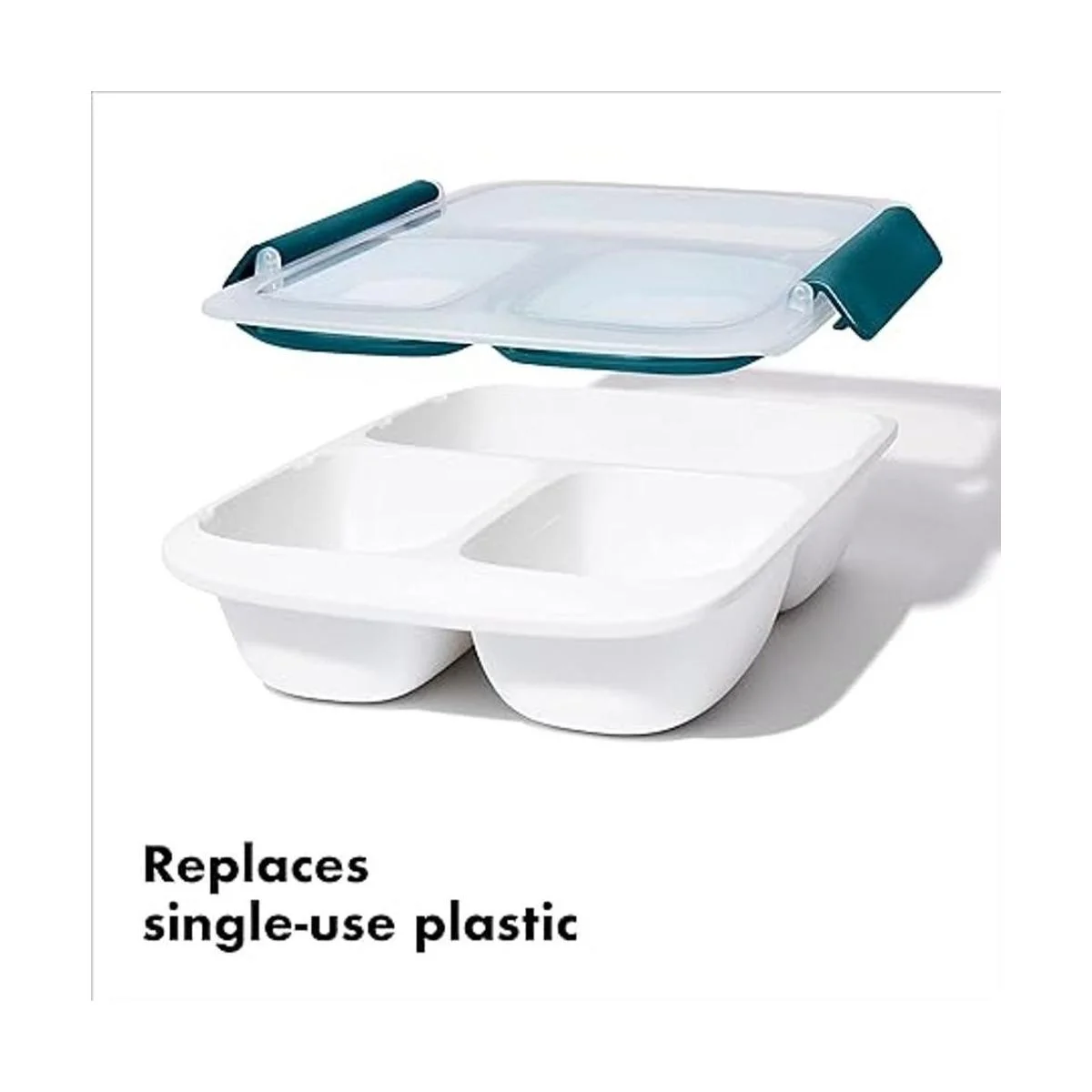 Tres compartimentos que sellan de forma segura para almuerzo y preparación de comida a prueba de derrames.