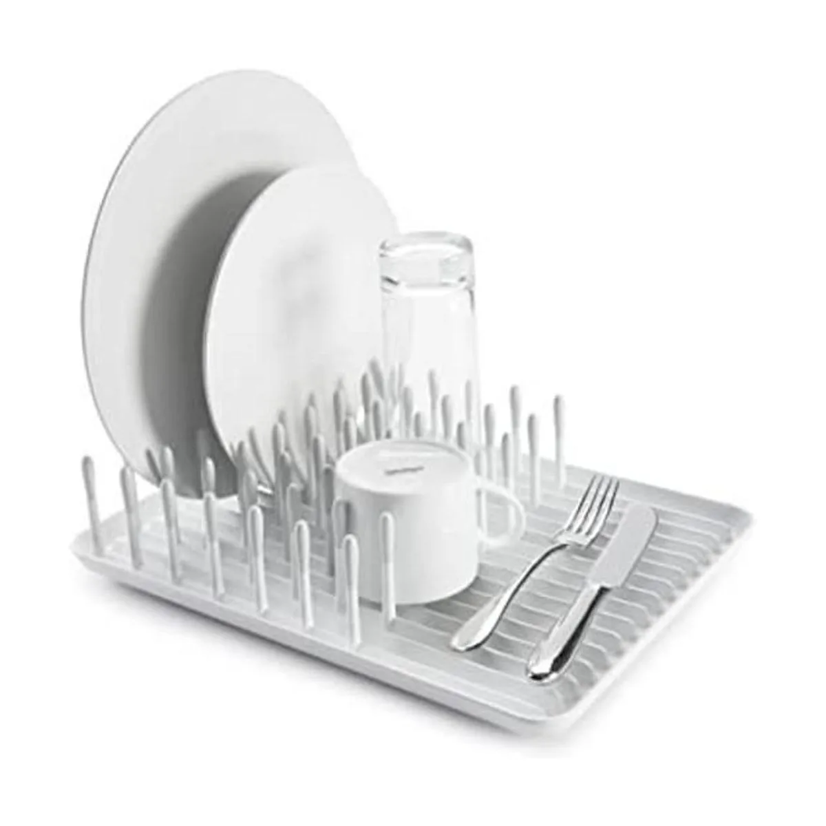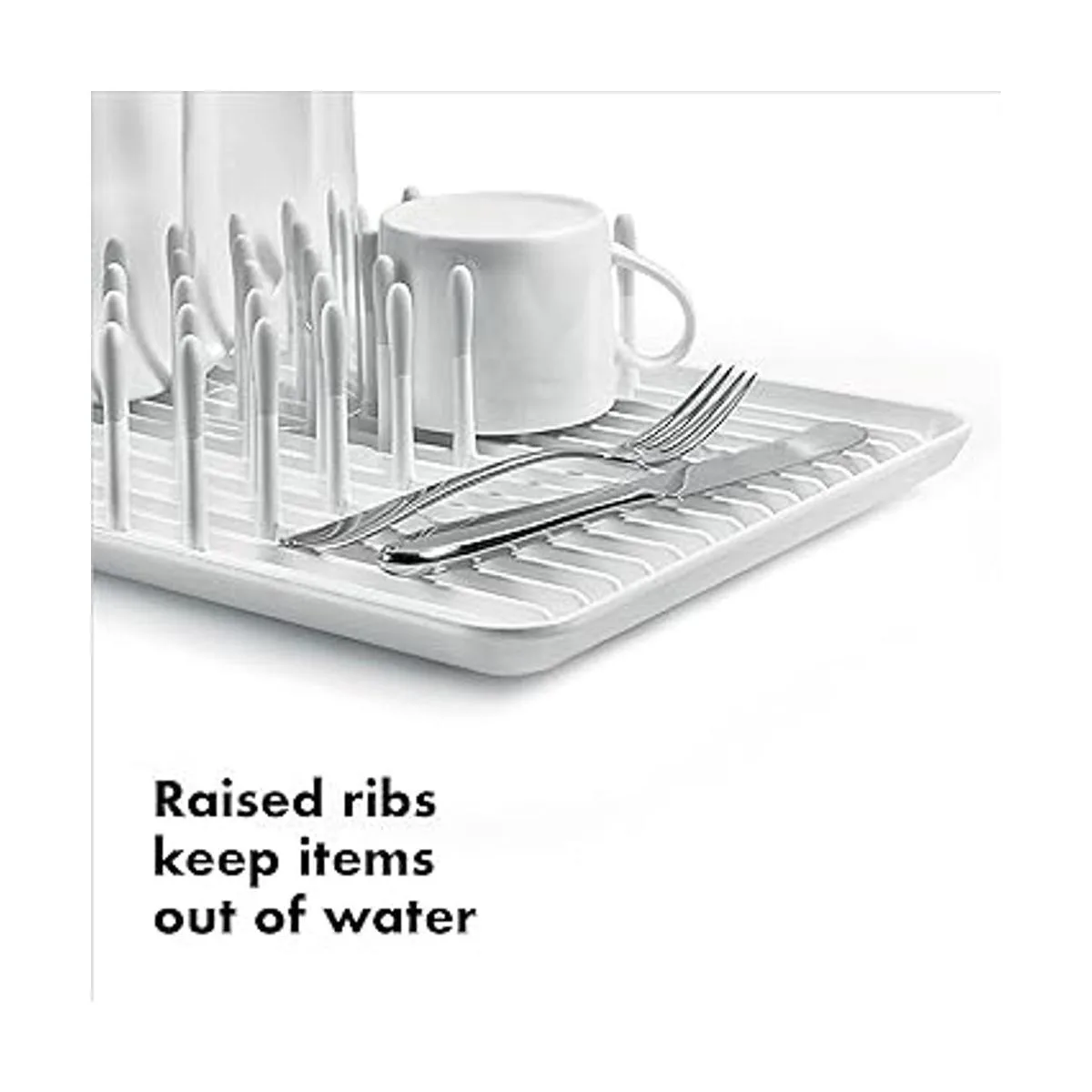 El área abierta con varillas elevadas proporciona espacio para piezas pequeñas y mantiene los artículos lejos del agua en la parte inferior de la bandeja