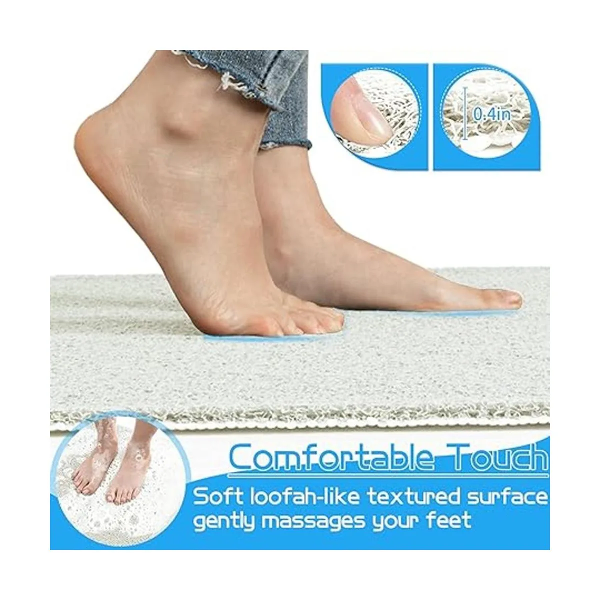 Sensación cómoda y exfoliante: alfombrilla de ducha de lufa suave de alta calidad para superficie texturizada con grosor ideal que será cómoda para tu ducha en los pies descalzos, masajea suavemente tus pies y exfolia tu piel. Proporciona un apoyo acolchado y cómodo cuando estás en la ducha, lejos del duro y frío tapete de ducha ordinario.