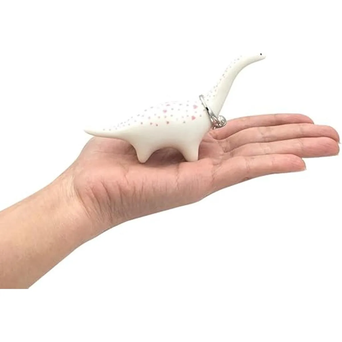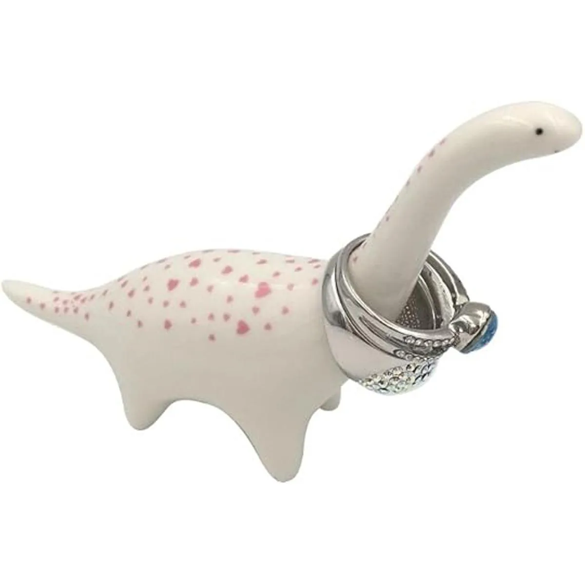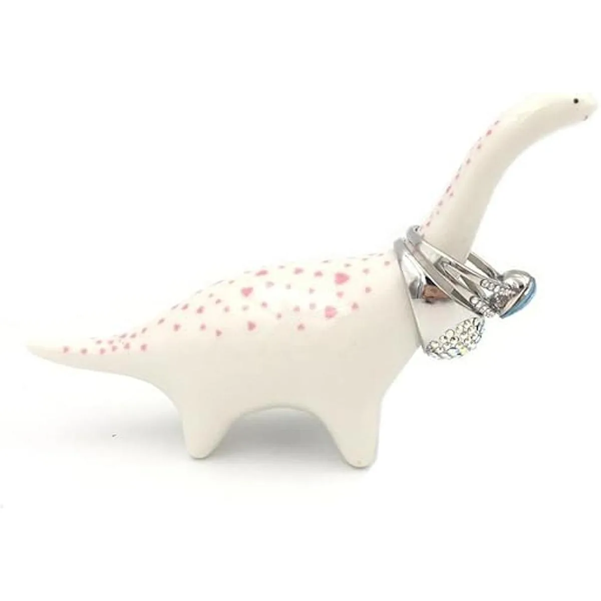 1. Adorable soporte de anillo de cerámica en forma de dinosaurio, con una mancha de corazón rosa en la parte posterior