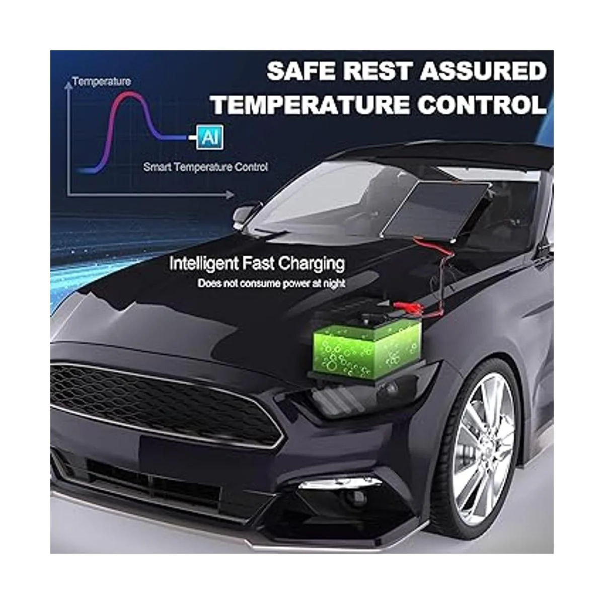 Protección inteligente: microprocesador de carga incorporado, algoritmo de carga mejorado, puede proporcionar protección contra sobrevoltaje, sobrecarga, cortocircuitos, etc. Puede evitar la carga inversa y se puede utilizar con seguridad para la carga y el mantenimiento de las baterías de 12 V.