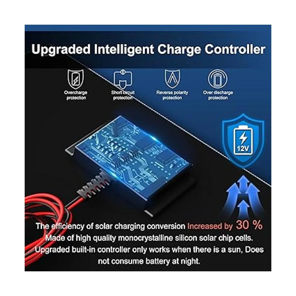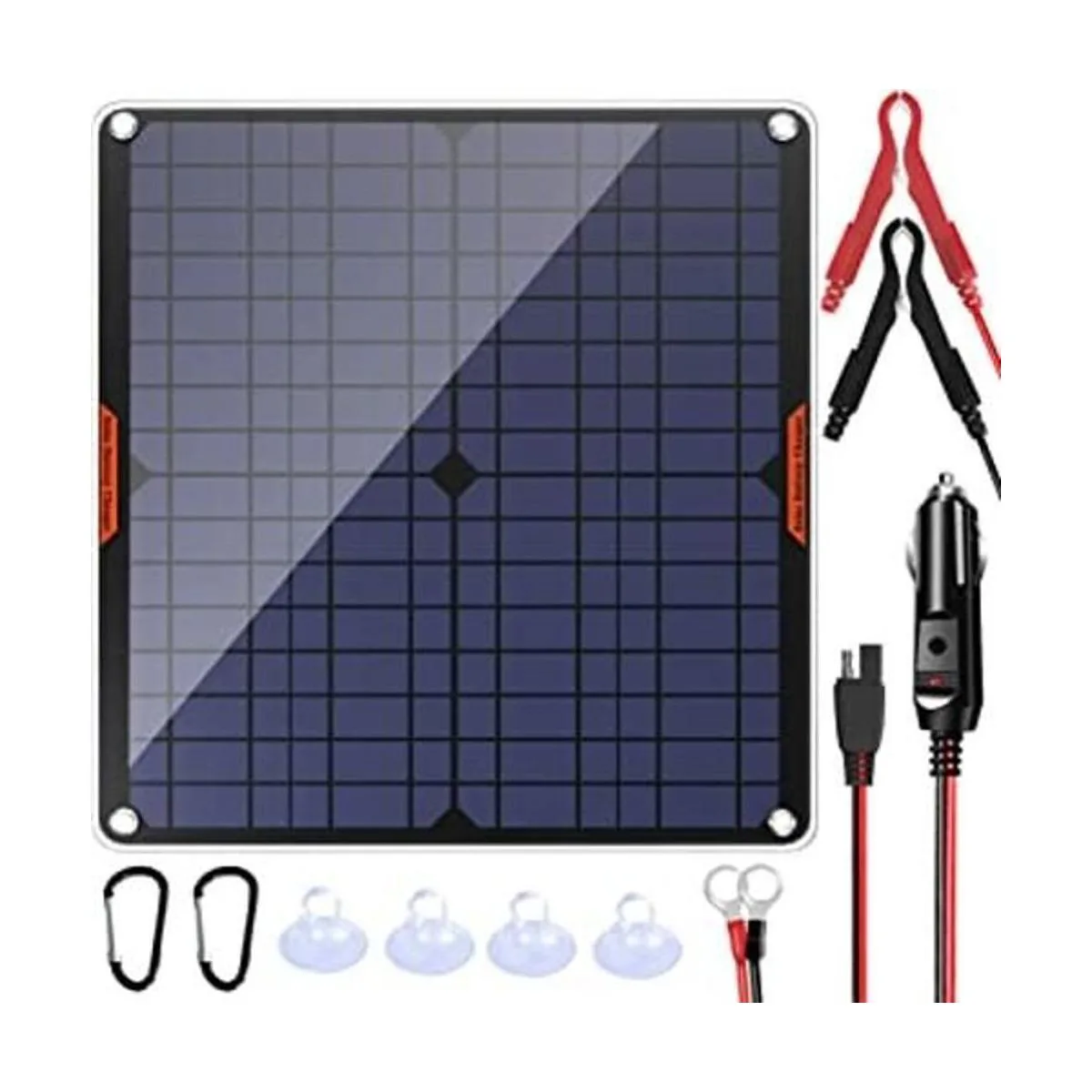 OYMSAE Cargador de batería con panel solar de 20 W12 V, portátil, impermeable, cargador y mantenedor para auto, embarcación, casa rodante, enchufe de encendedor de cigarrillos y clip de cocodrilo