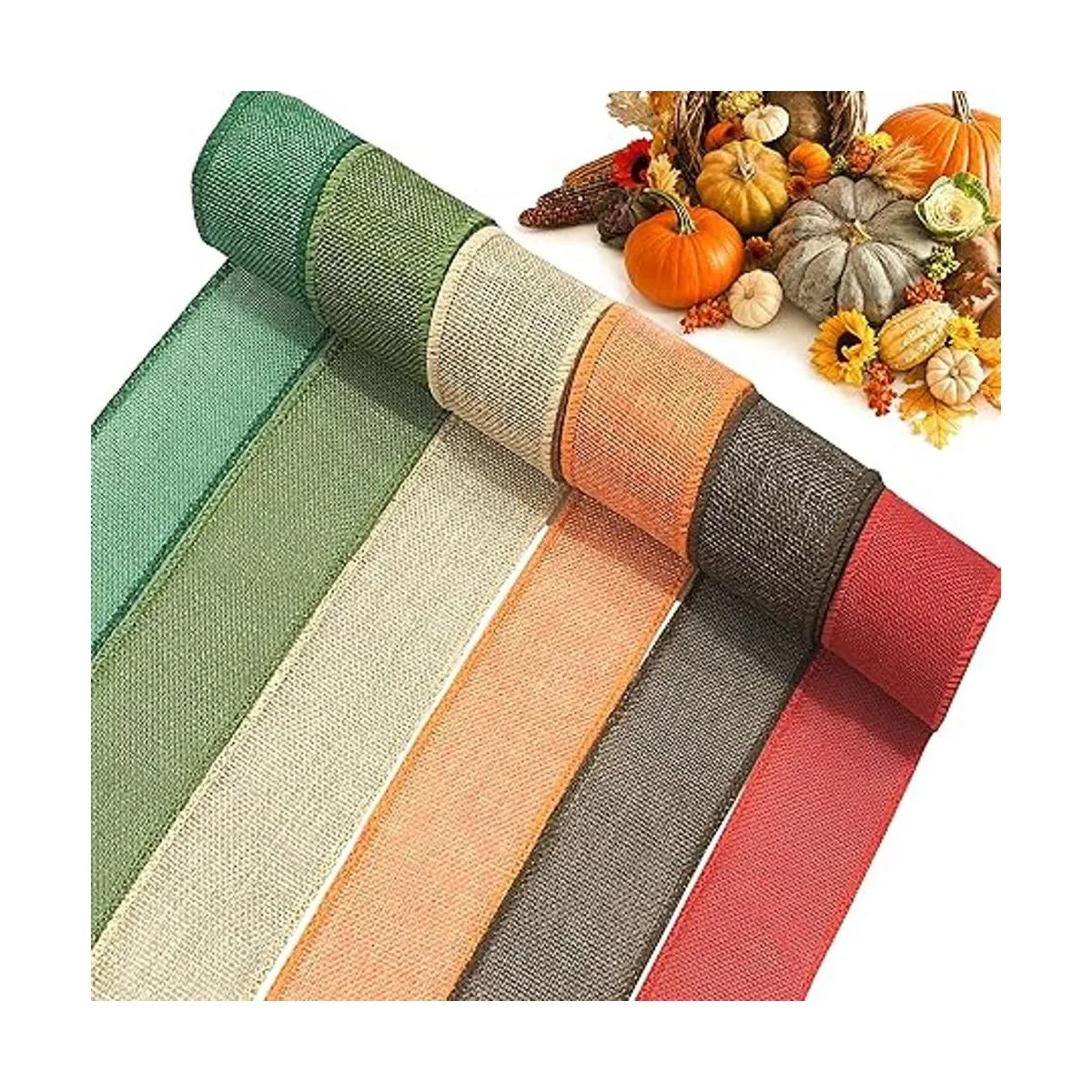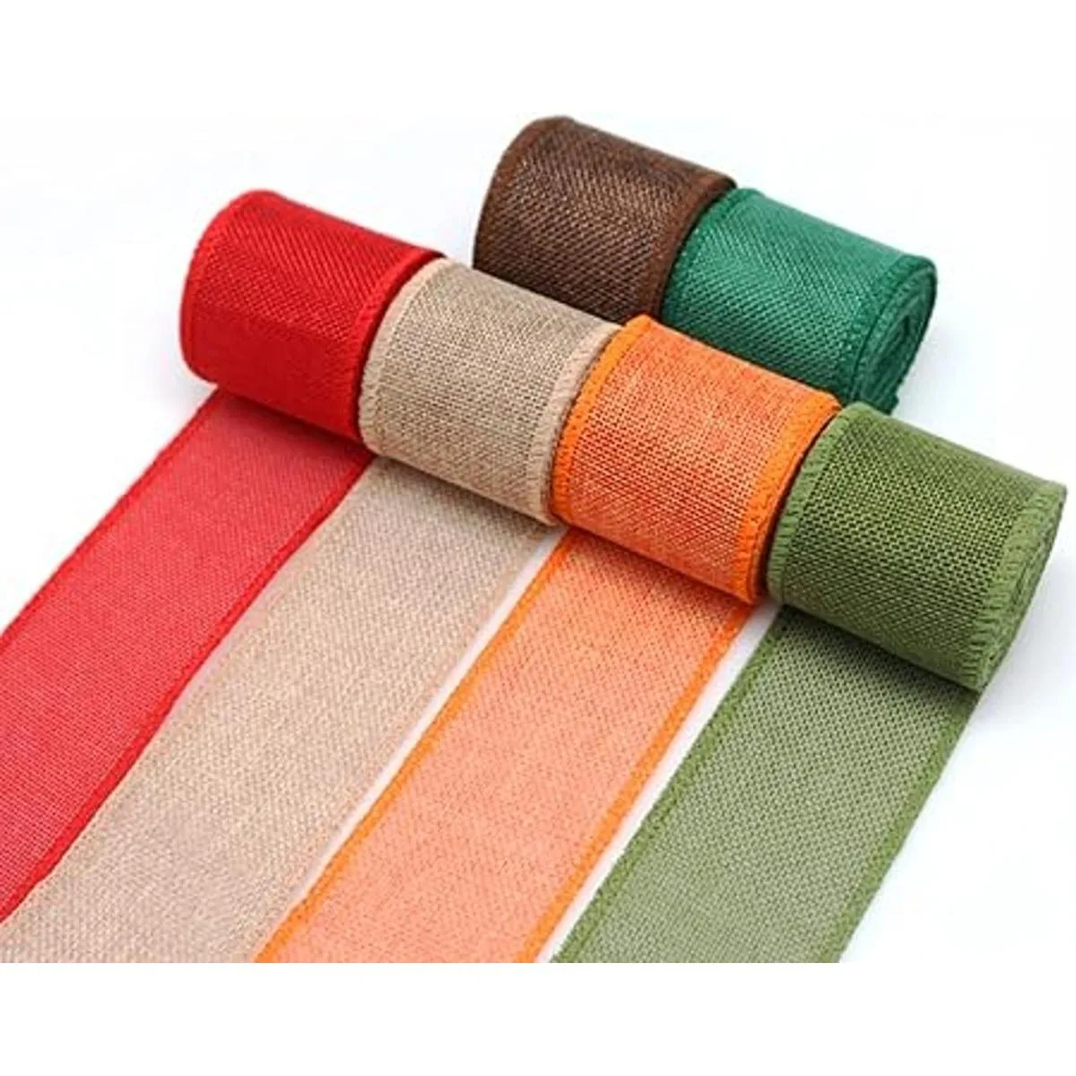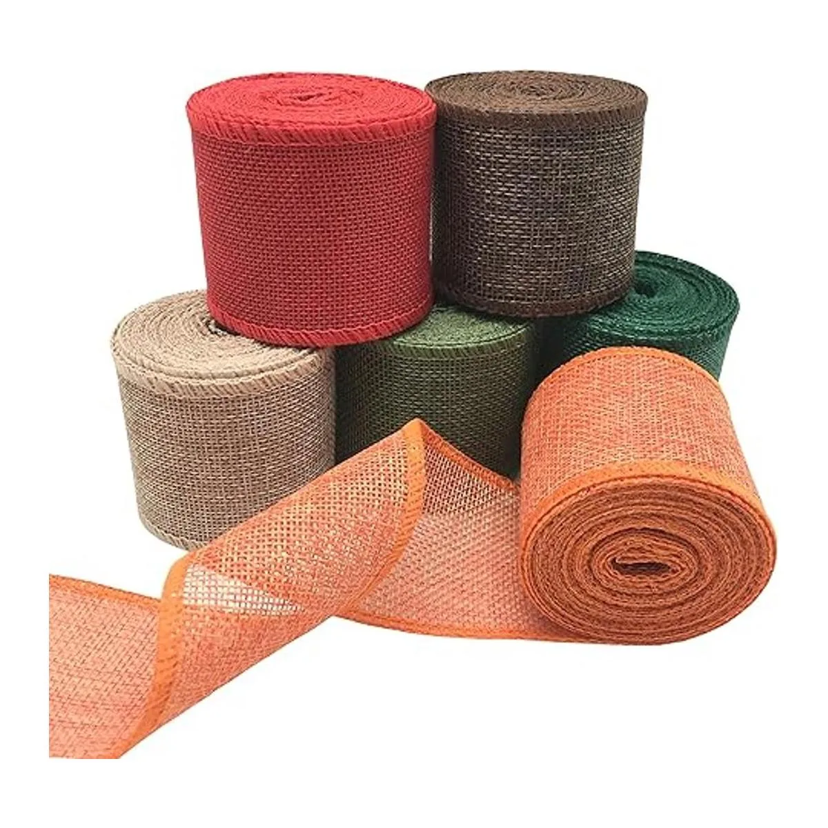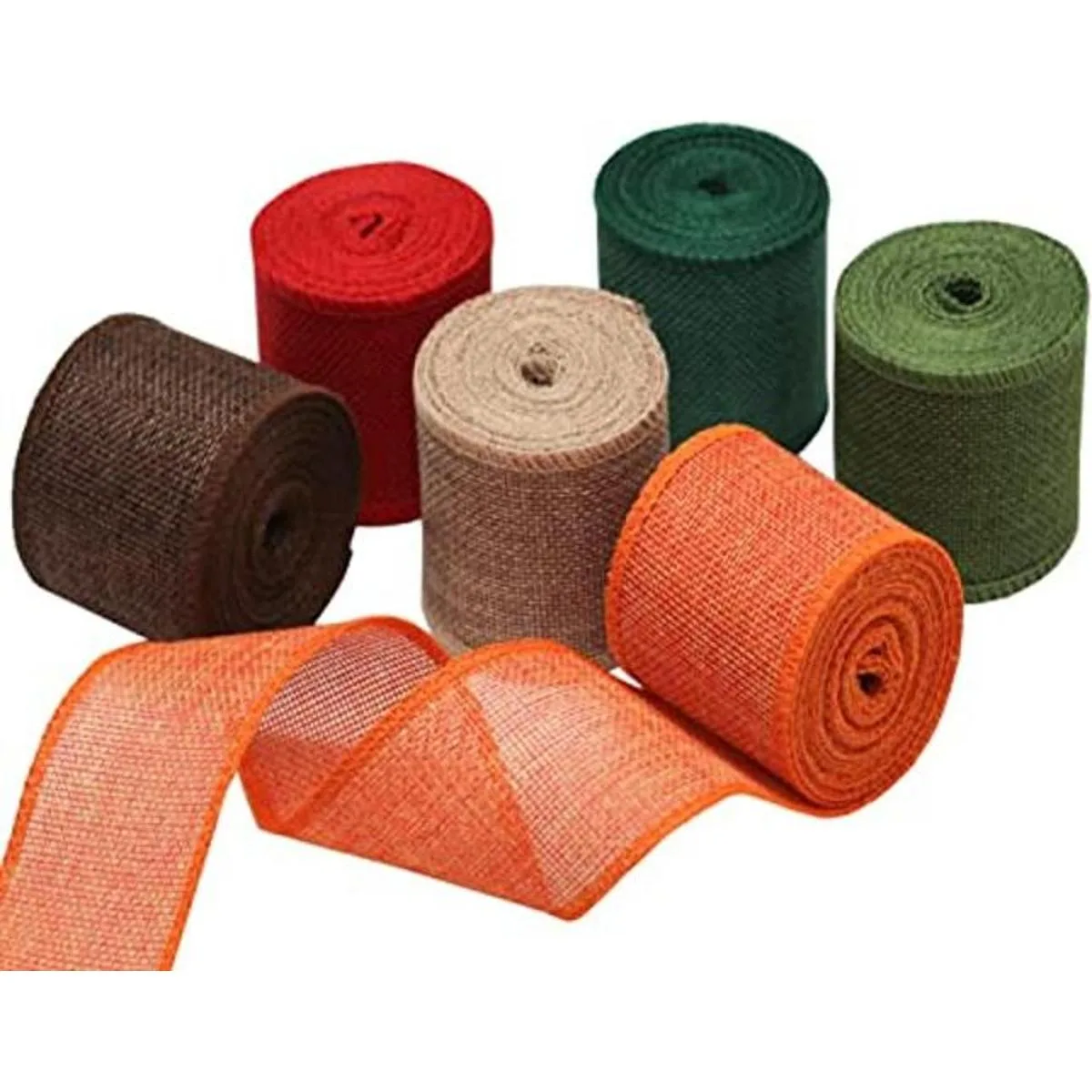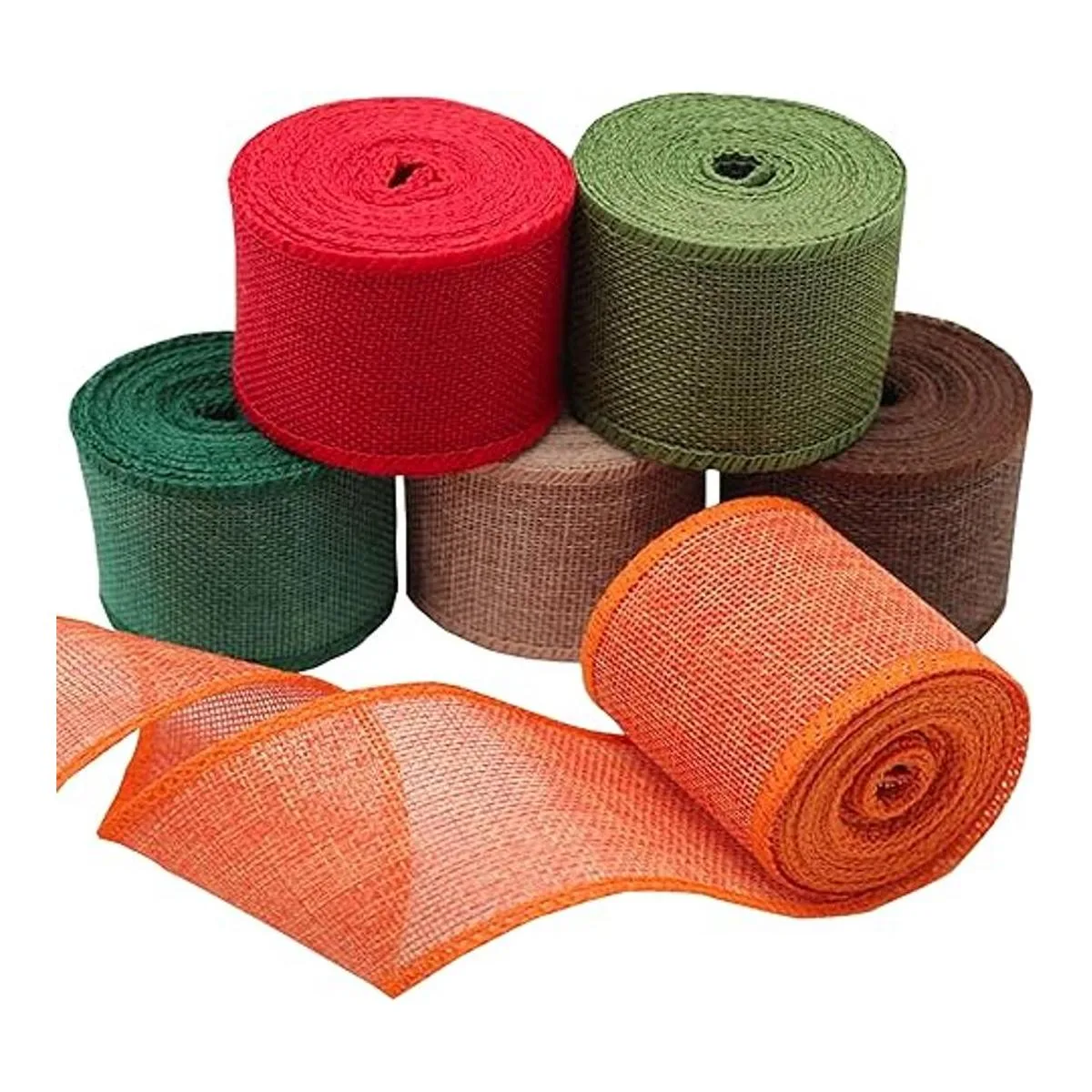 OZXCHIXU 6 rollos de cinta de arpillera con alambre, cinta de tejido de arpillera natural en 6 colores, adornos de bricolaje, suministros de manualidades para vacaciones, corona decorativa rústica para envolver regalos, lazos florales, recuerdos de fiesta, 2.4 x 5 yardas