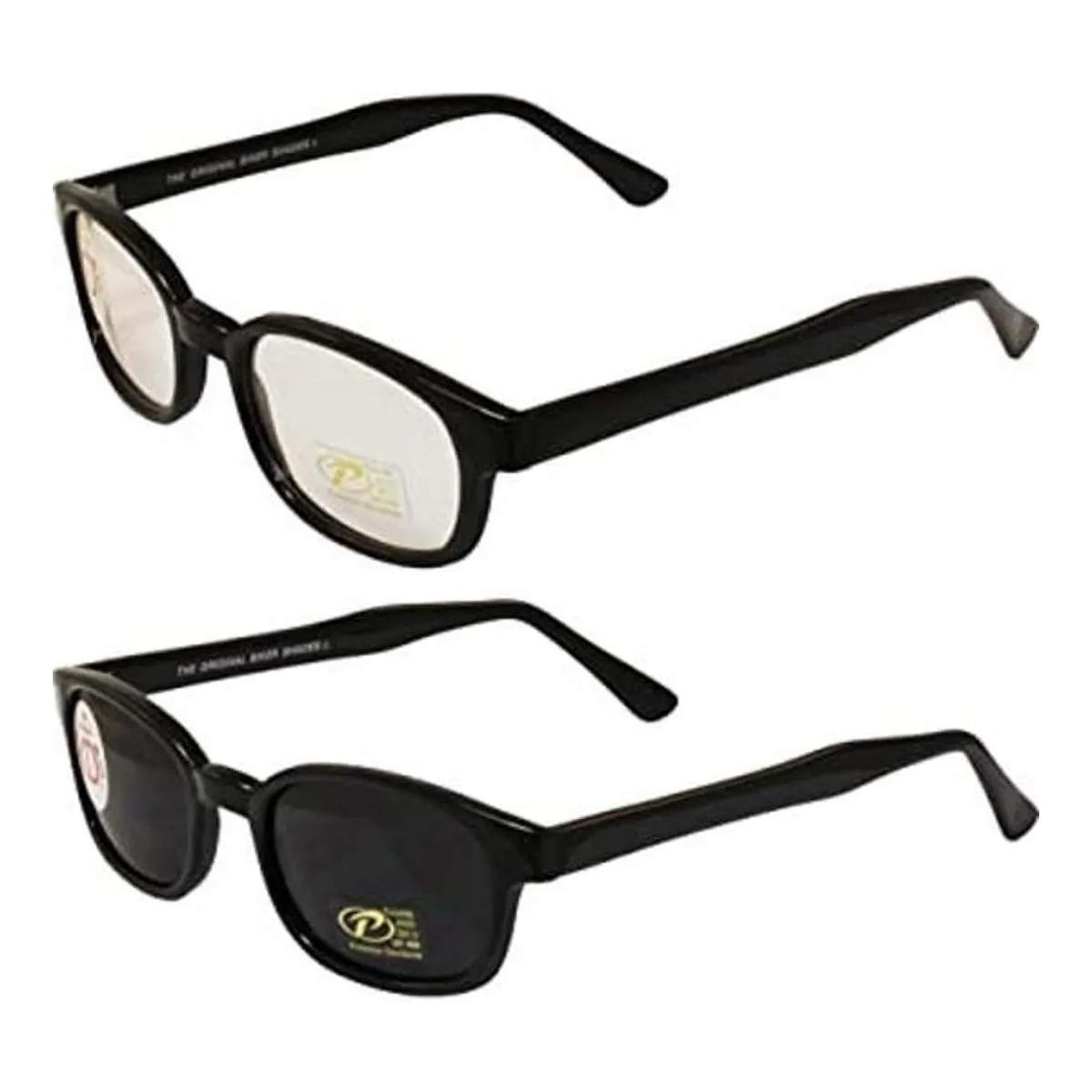 Pacific Coast Sunglasses Original KDs Biker Gafas de sol para motociclista, paquete de 2 lentes transparentes y ahumadas, color negro, adulto, Negro, o