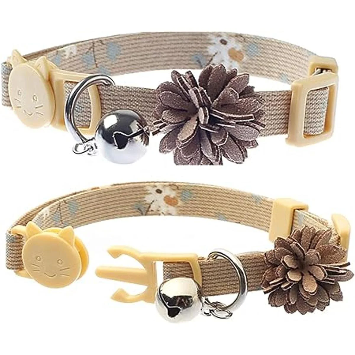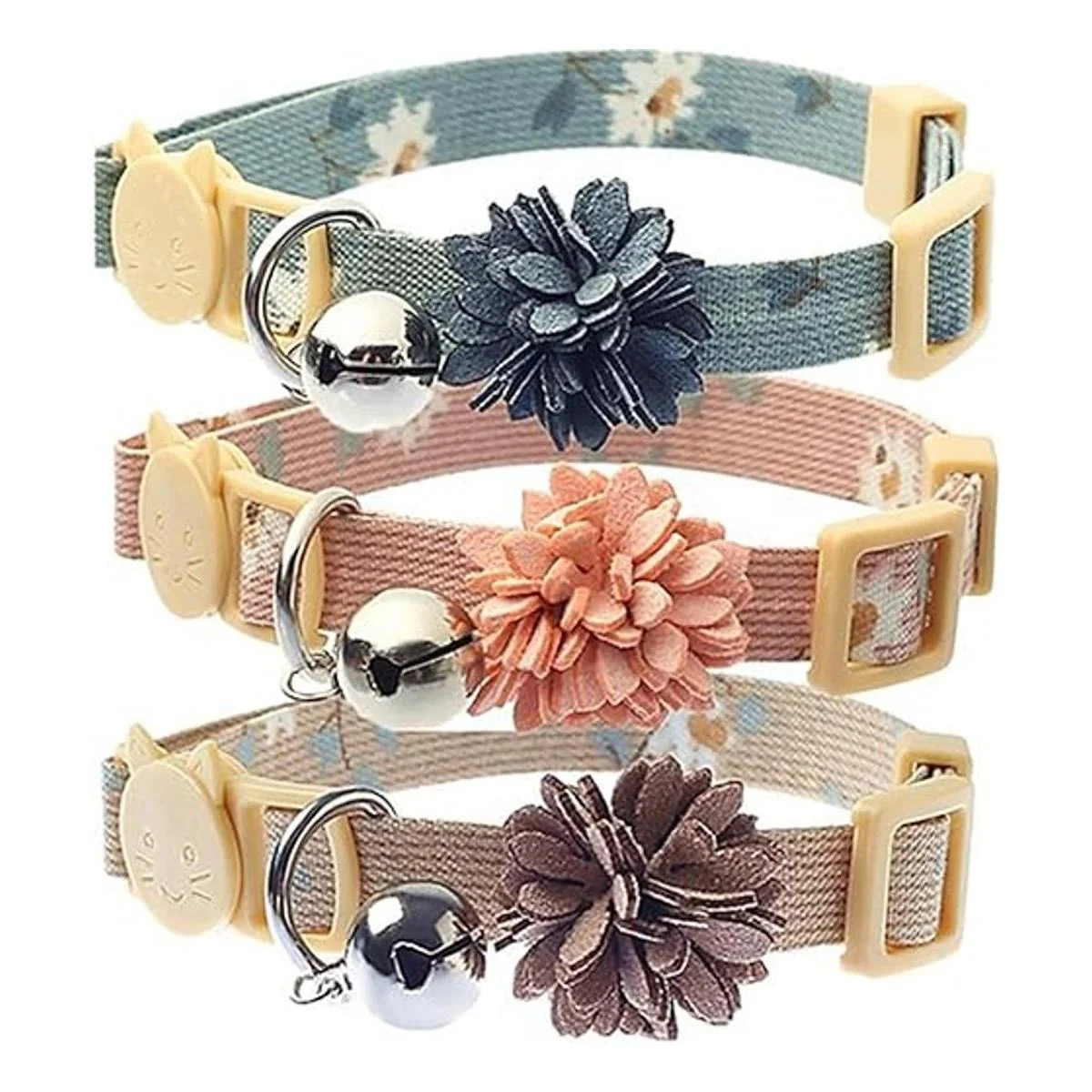 Pack de 3 collares de flores para gatos pequeños con campana.