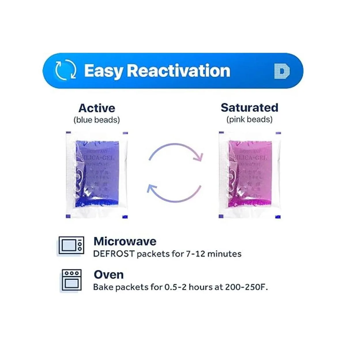 Pack de paquetes de 50 seco Dry Gel de Sílice desecante.