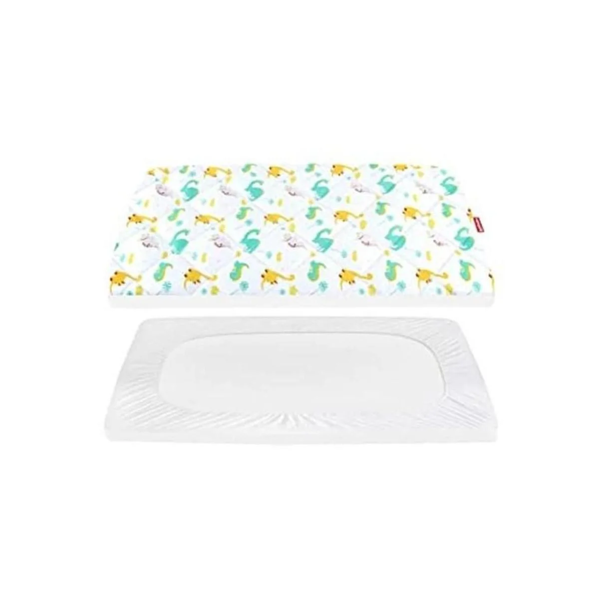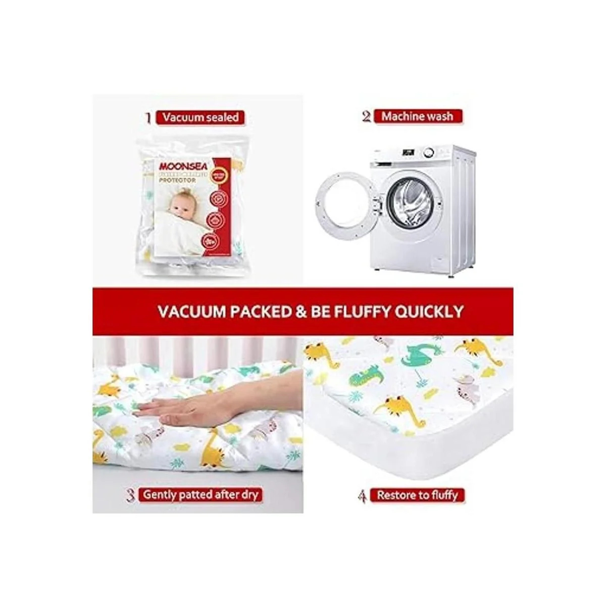Tamaño y bonito estampado: paquete de estampado de dinosaurio Moonsea y funda de colchón de juego de 27 x 39 x 5 pulgadas, diseñado específicamente para el colchón de cuna Pack N Play Mini/portátil. Si tienes un colchón plegable u otro colchón portátil/mini cuna, incluyendo Graco Pack N Play y Dream on Me, debes tener uno.