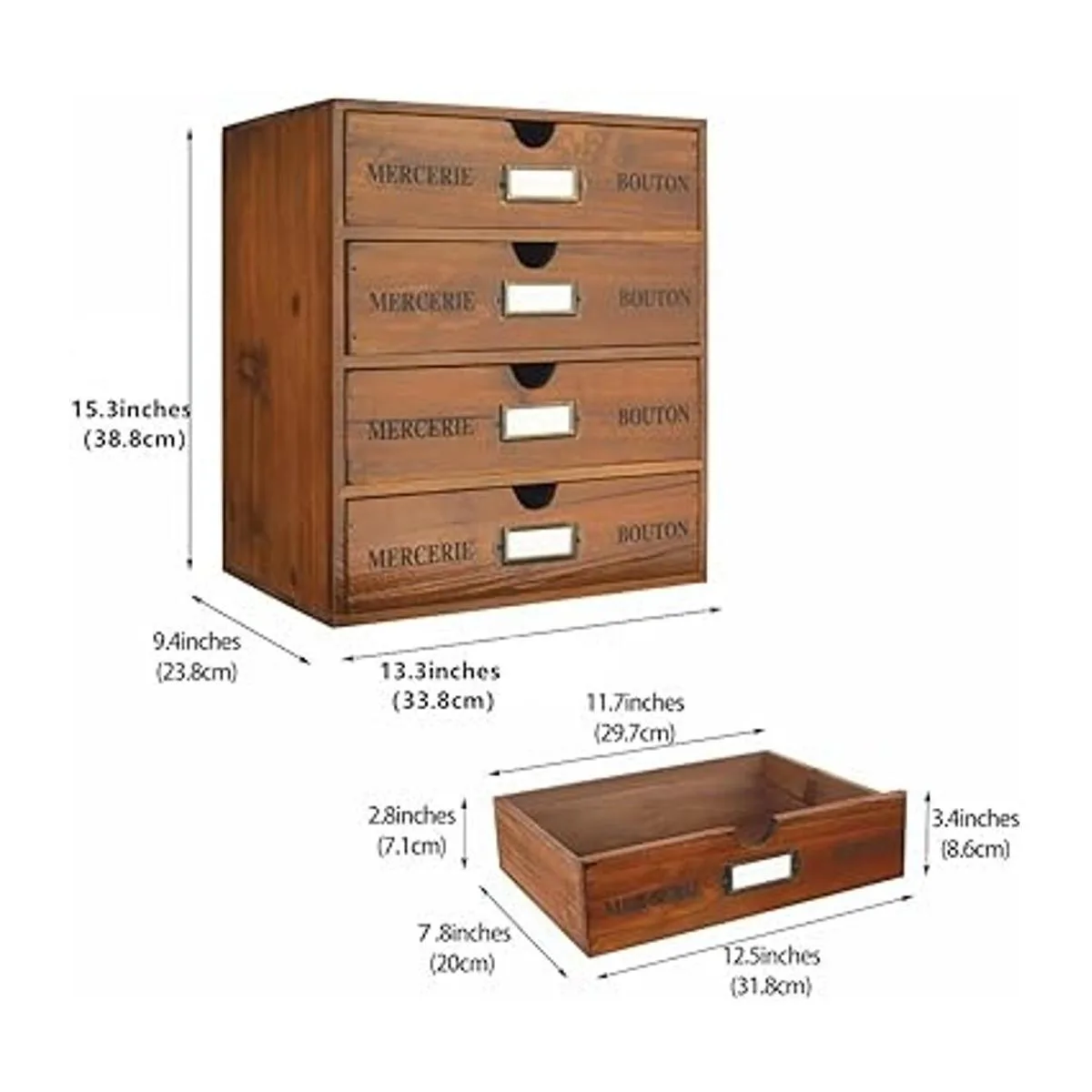 Paquete: una caja de almacenamiento minimalista con 4 cajones. Todos los cajones tienen asa con etiqueta.