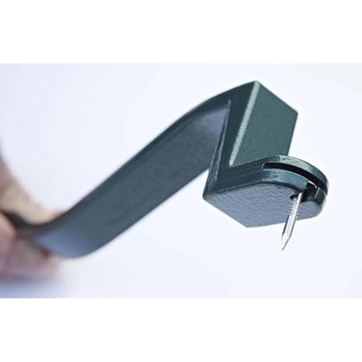 Punta de garra El extractor de clavos elimina las uñas fácilmente de las tejas del techo. Coloca el extremo de la garra debajo de la uña y rueda el clavo girando la serpiente del techo